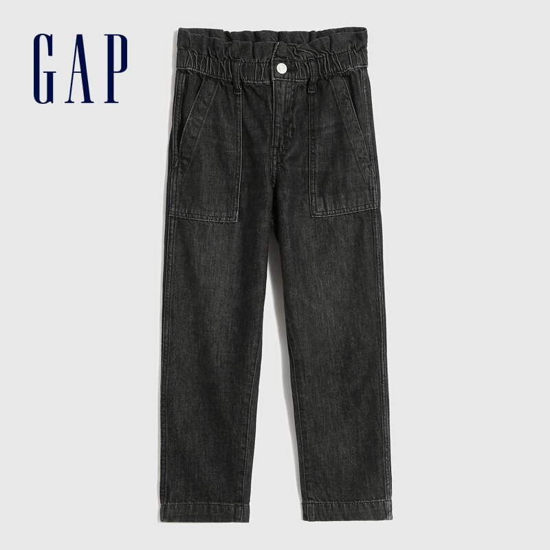 Gap Темные весенние джинсы, хлопковые штаны, эластичная талия, высокая талия, тренд сезона, в западном стиле, детская одежда, свободный прямой крой