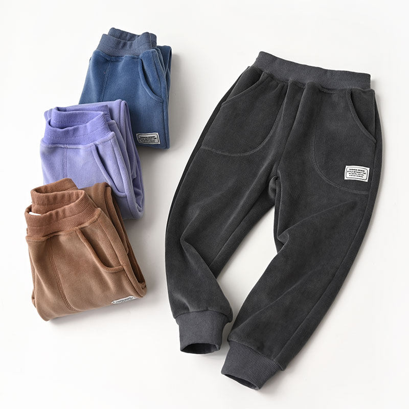 Бархатные демисезонные детские удерживающие тепло штаны для мальчиков