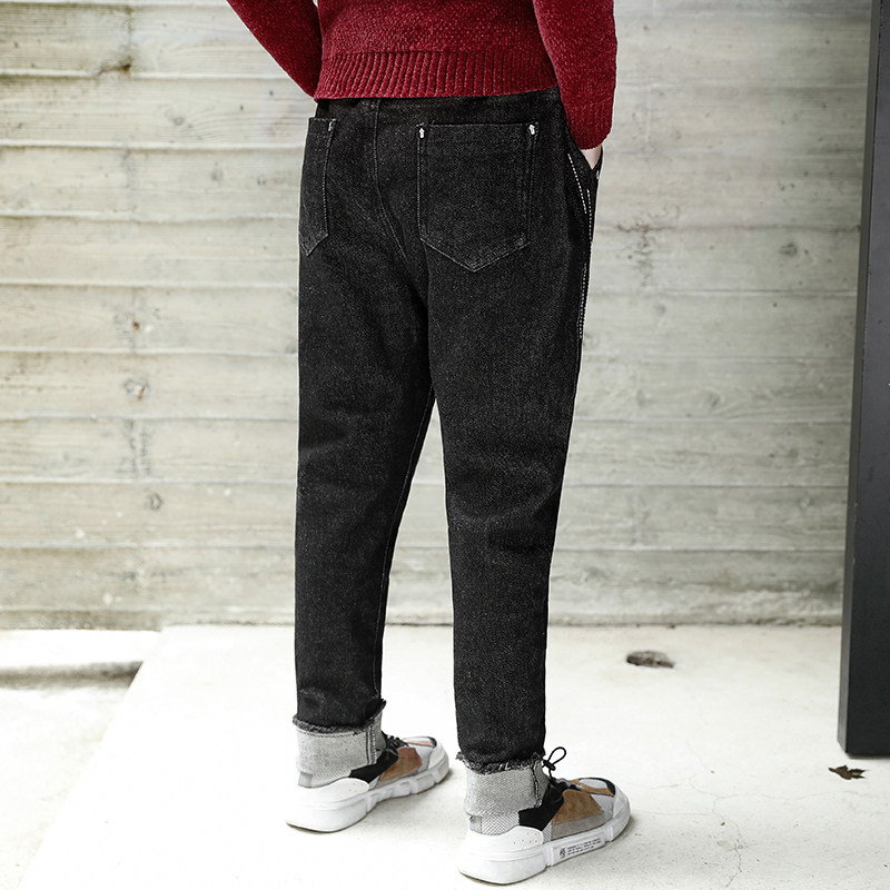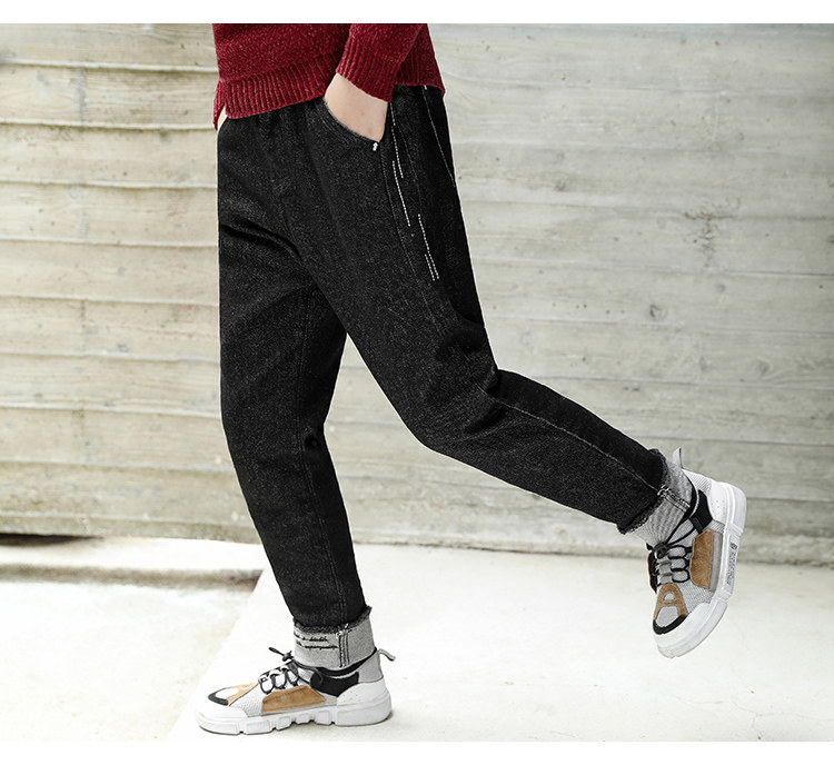 巧米兔 Флисовые демисезонные джинсы с начесом для мальчиков, приталенный комбинезон, штаны, коллекция 2021, увеличенная толщина, в корейском стиле, в западном стиле