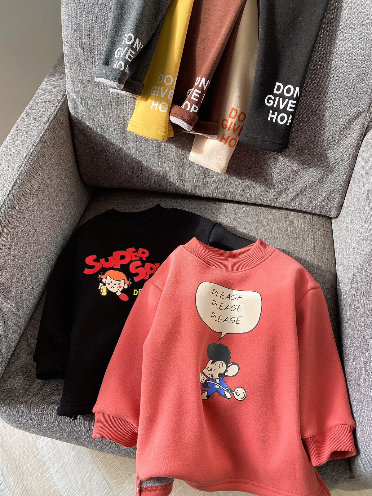 Пять цветов легко сочетать. Мягкие офсетные буквы на штанинах.