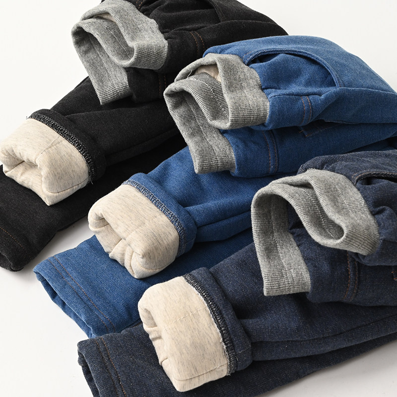 Детские штаны, хлопковые цветные удерживающие тепло зимние джинсы для мальчиков, увеличенная толщина, детская одежда