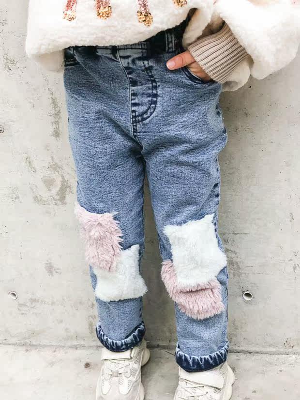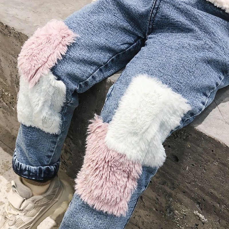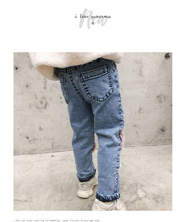 Демисезонные детские джинсы, флисовые штаны для отдыха, коллекция 2021, увеличенная толщина