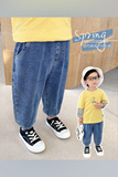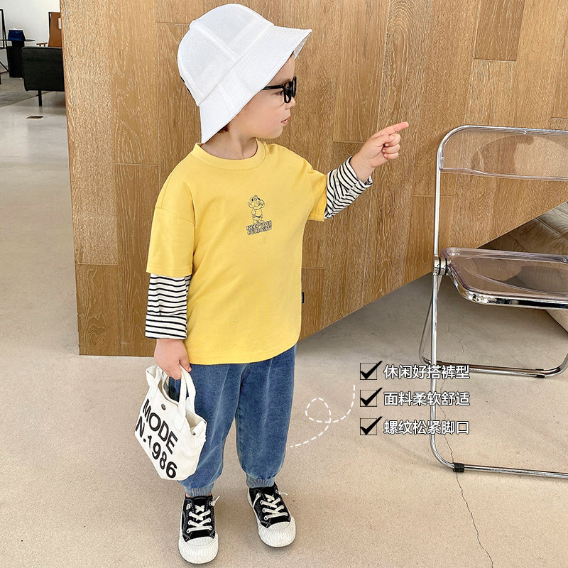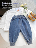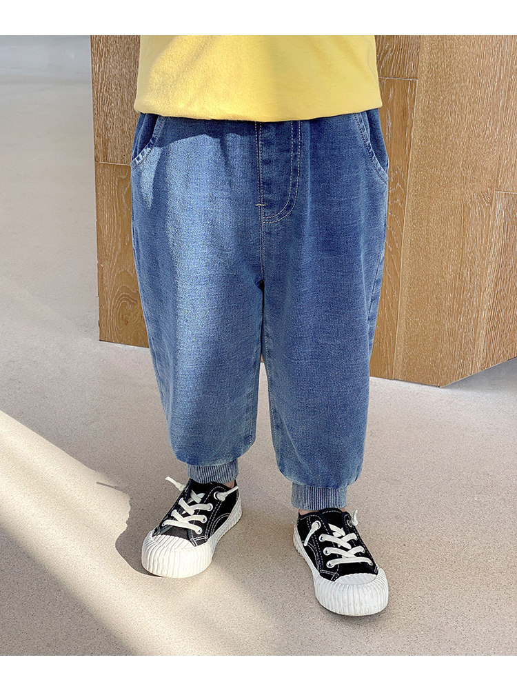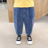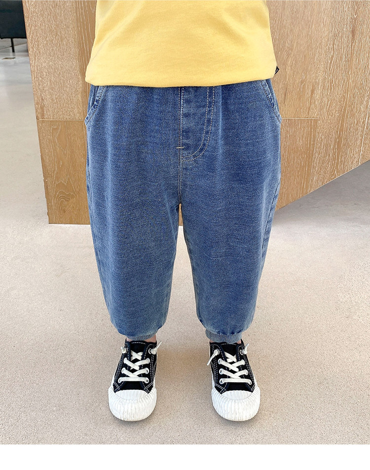 Трикотажные осенние джинсы для мальчиков, детские штаны, детская одежда