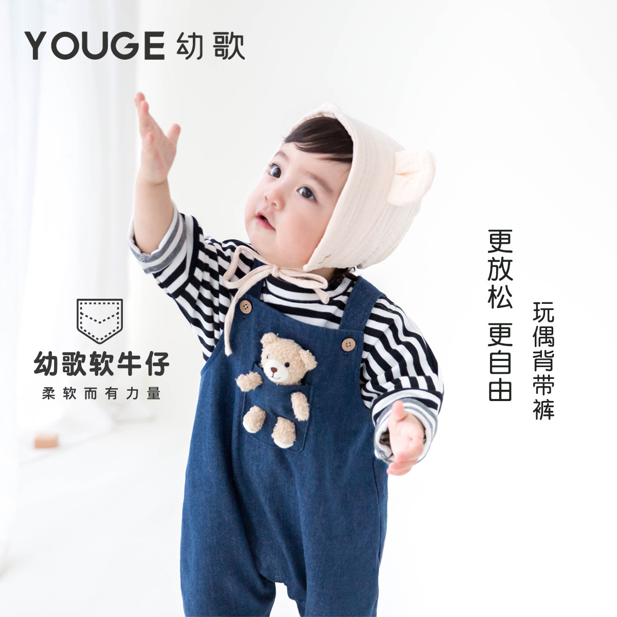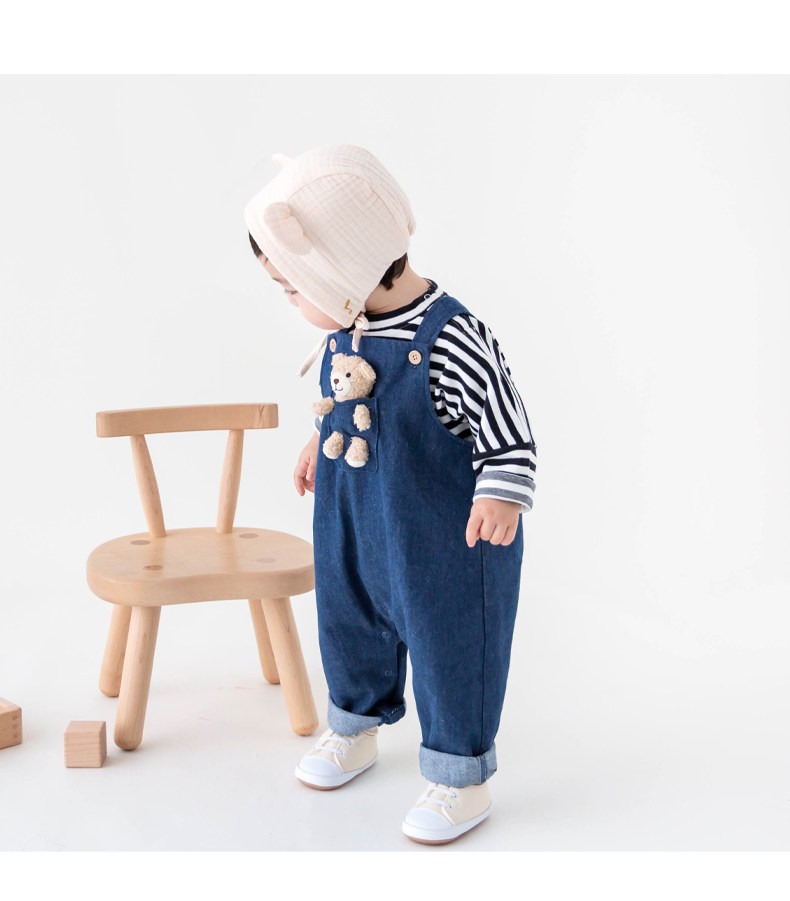 Осенний джинсовый слинг для младенца подходит для мужчин и женщин, мультяшный комбинезон, с медвежатами