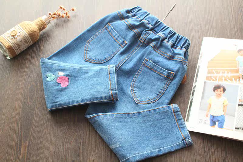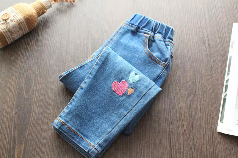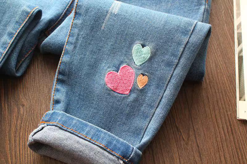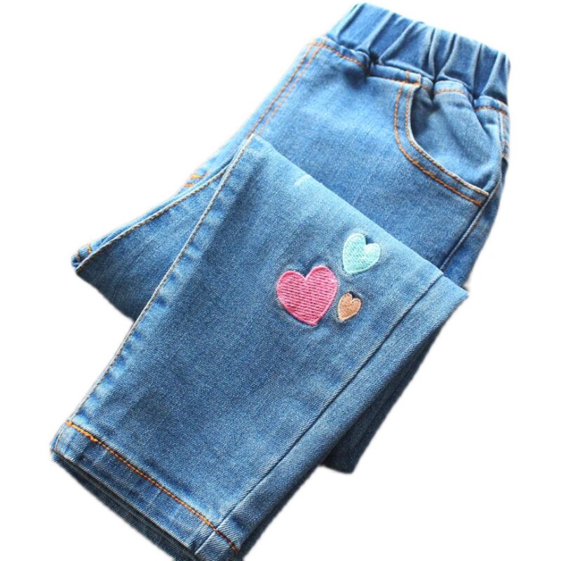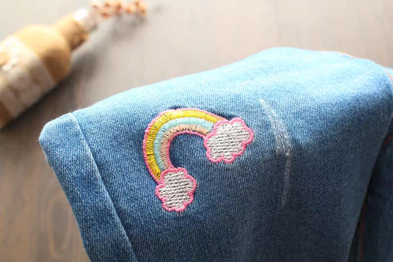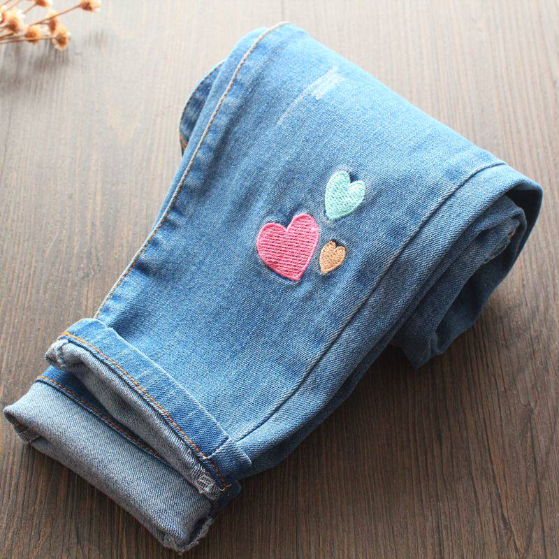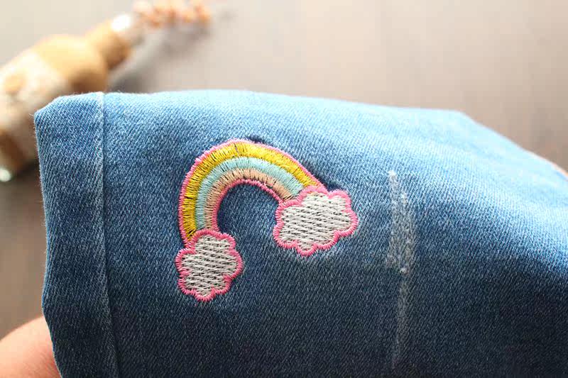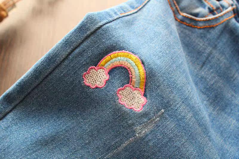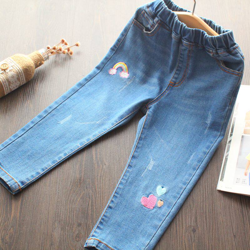 Джинсы, детские радужные джинсовые штаны, с вышивкой, эластичная талия
