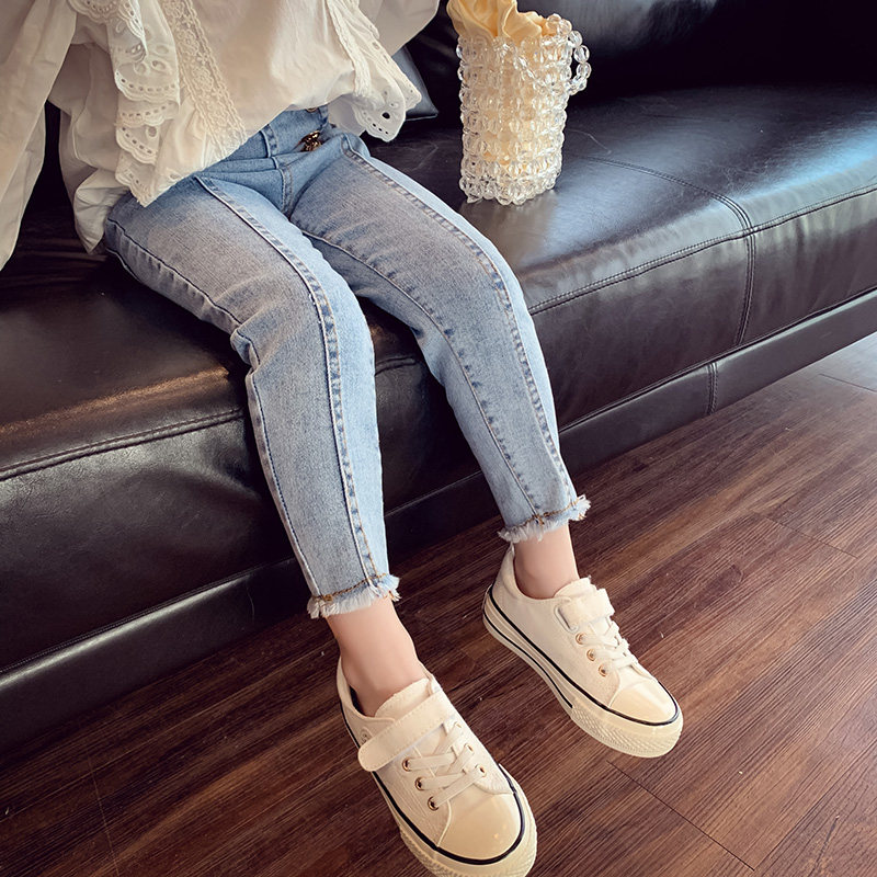 Джинсы, детские осенние штаны, приталенный комбинезон, коллекция 2021, в западном стиле, высокая талия