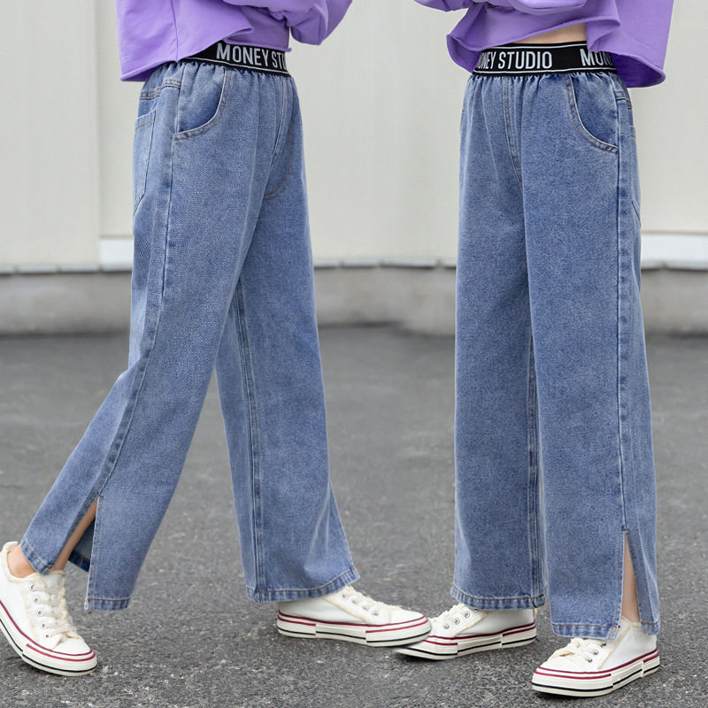 Джинсы, детские штаны для отдыха, высокая талия, в корейском стиле