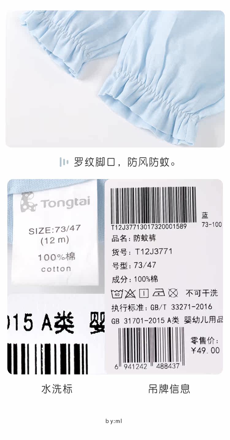 童泰 Детское средство от комаров, детские тонкие дышащие штаны, фонарь для мальчиков, повседневные брюки