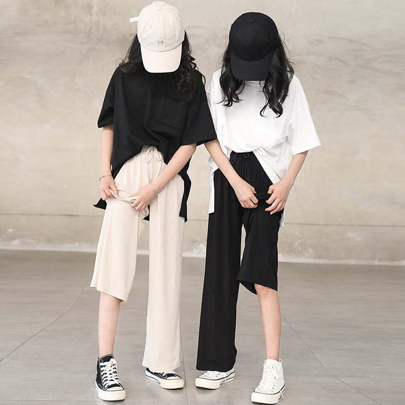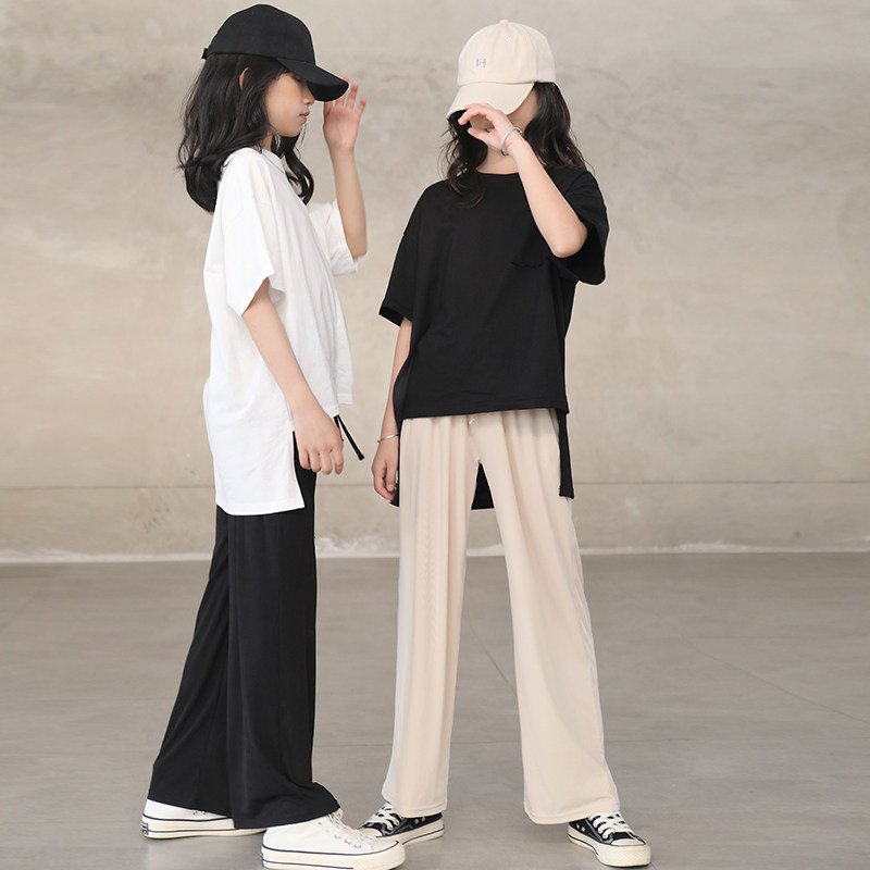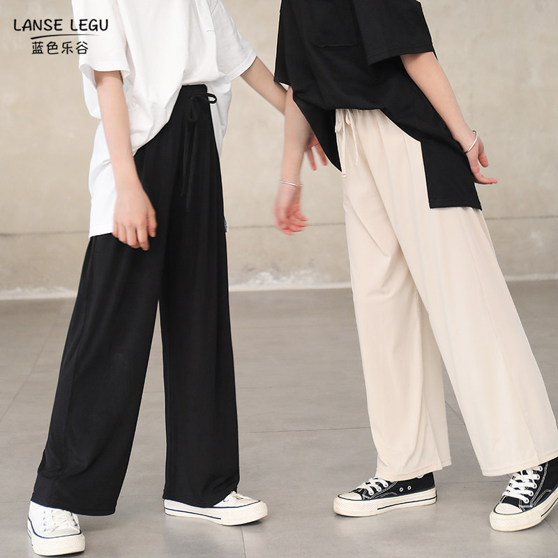 Штаны, летняя шелковая детская тонкая летняя одежда, 2023, подходят для подростков, в западном стиле, свободный прямой крой