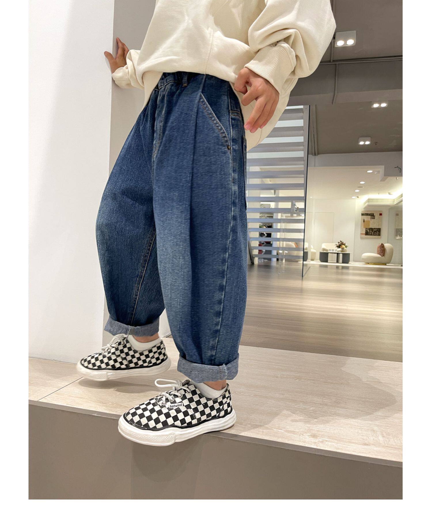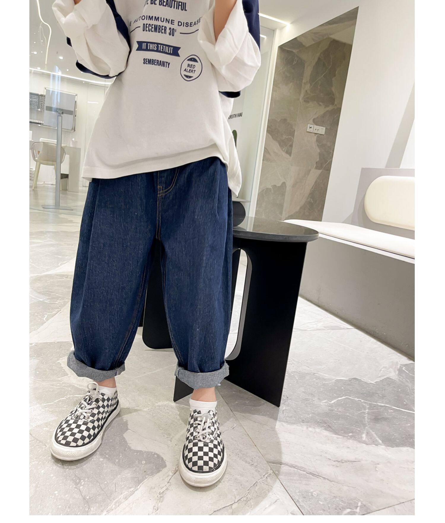 Детские джинсы для мальчиков, осенние штаны, подходит для подростков, детская одежда
