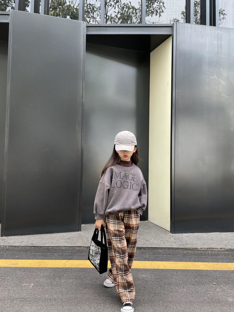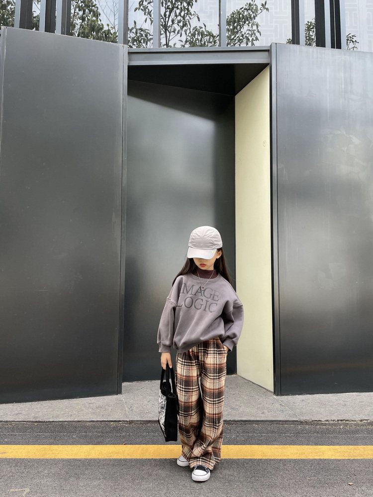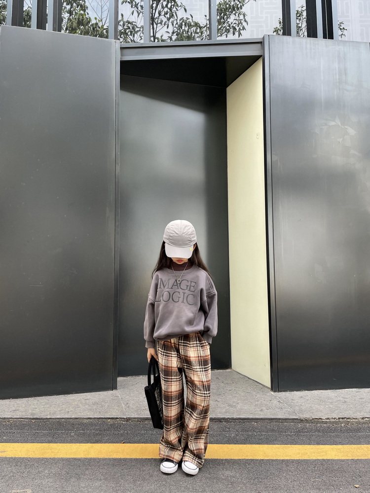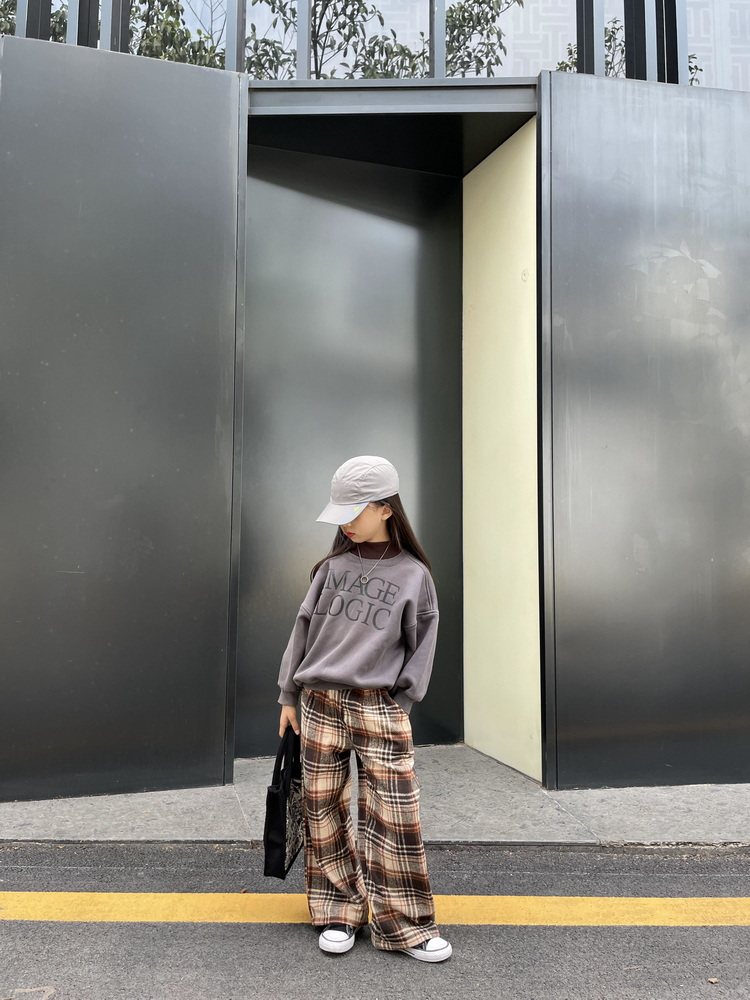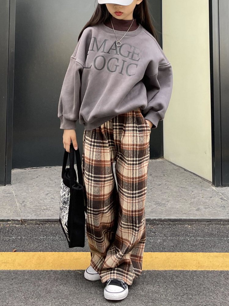 Детские демисезонные коричневые шерстяные модные штаны подходит для мужчин и женщин, свободный прямой крой