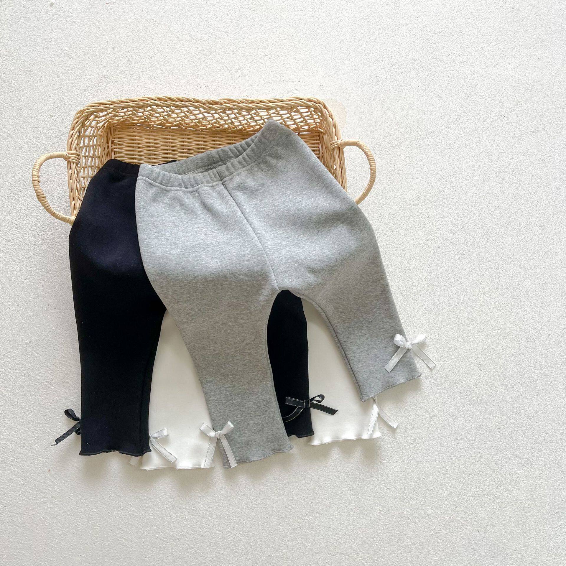 Флисовые леггинсы для новорожденных, штаны, удерживающий тепло пуховик для выхода на улицу с бантиком, увеличенная толщина