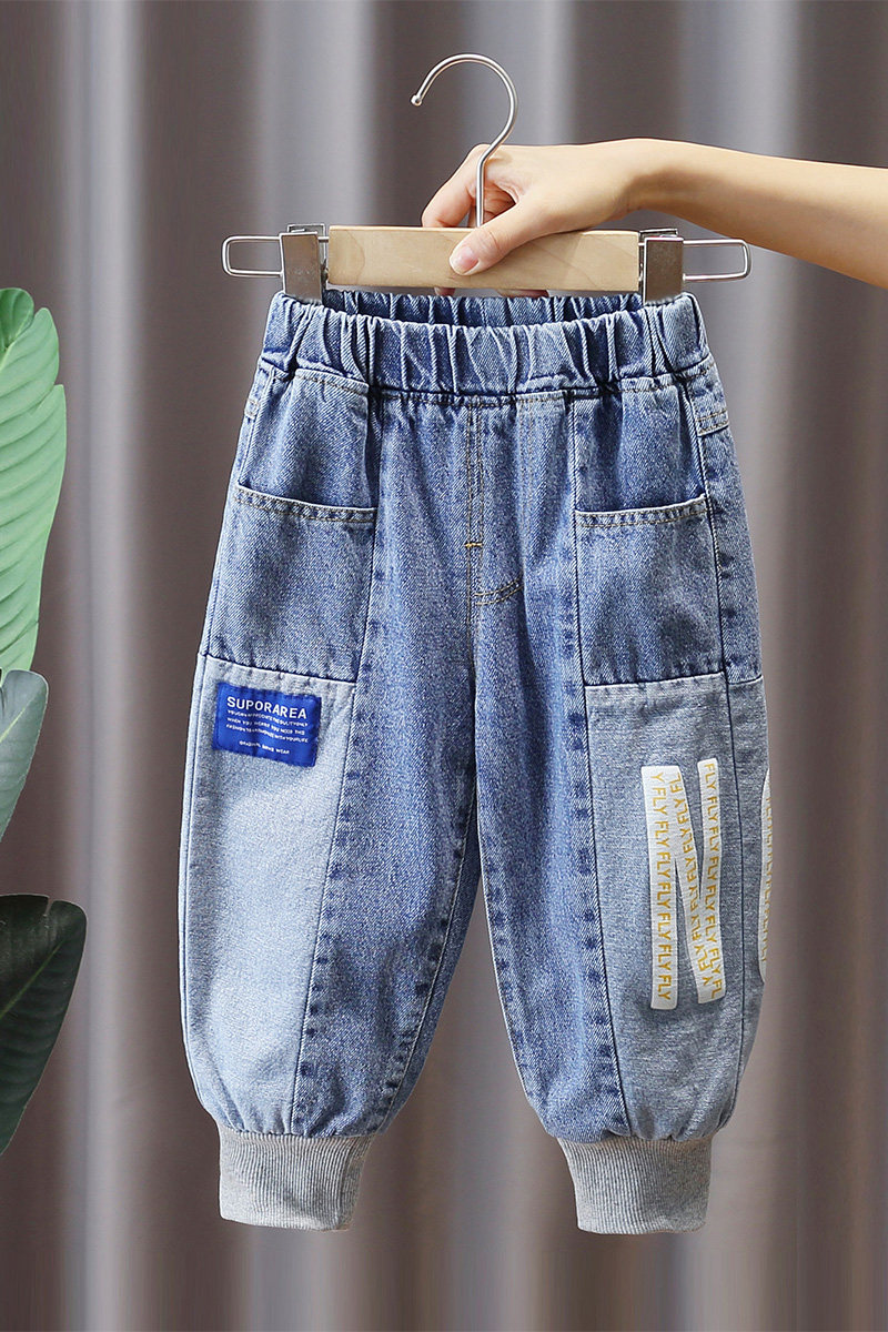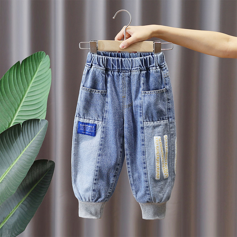 Детские штаны для мальчиков, джинсы, осенние, коллекция 2022, в западном стиле