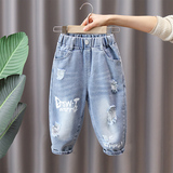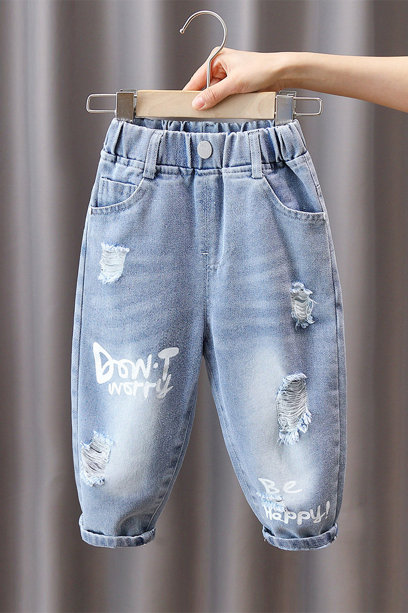 Джинсы для мальчиков, синие демисезонные детские штаны, в западном стиле