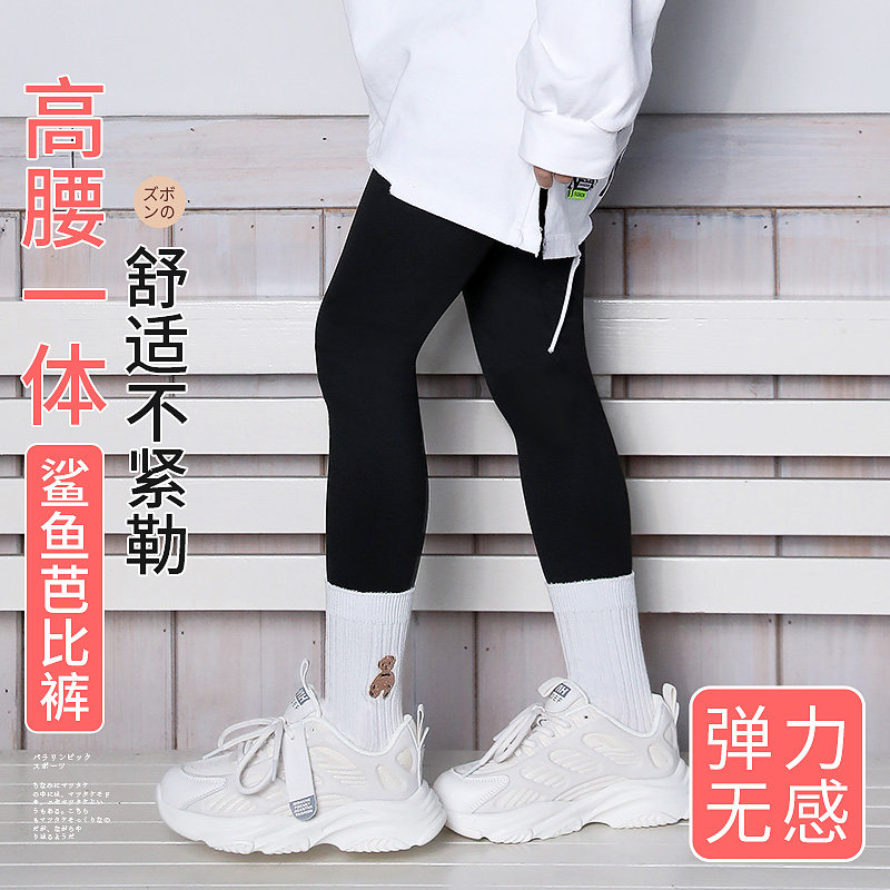 Акула, тонкие штаны, эластичные детские черные цветные леггинсы, высокая талия