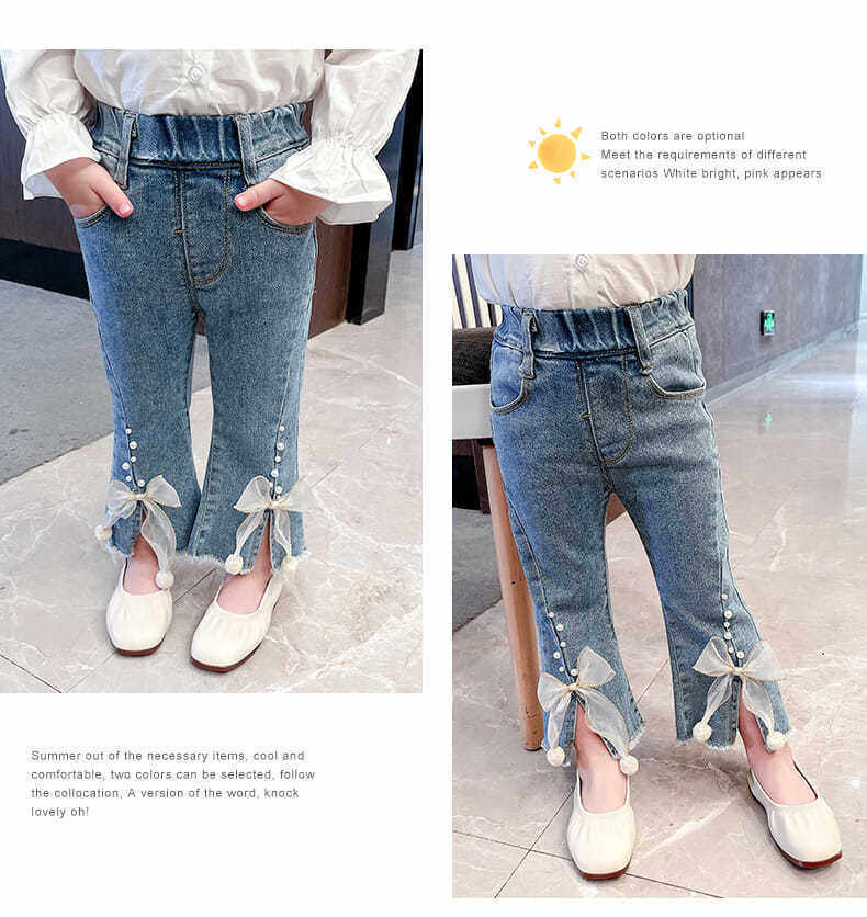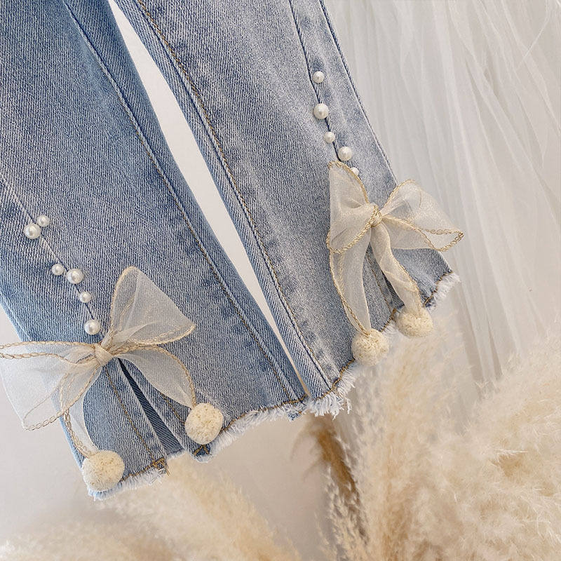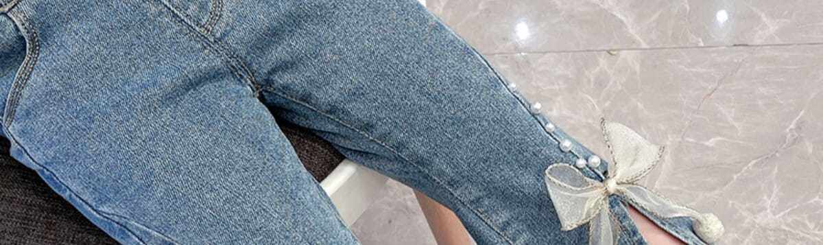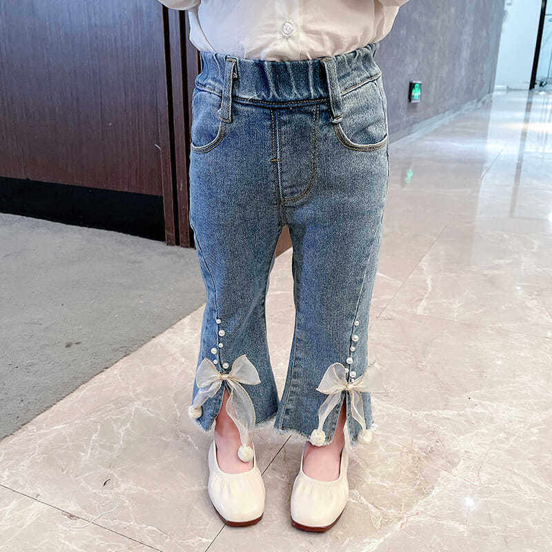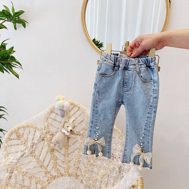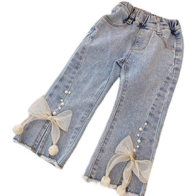 Джинсы, осенние детские штаны для девочек с бантиком, в западном стиле, в корейском стиле