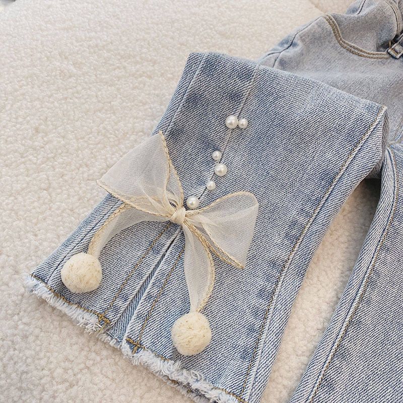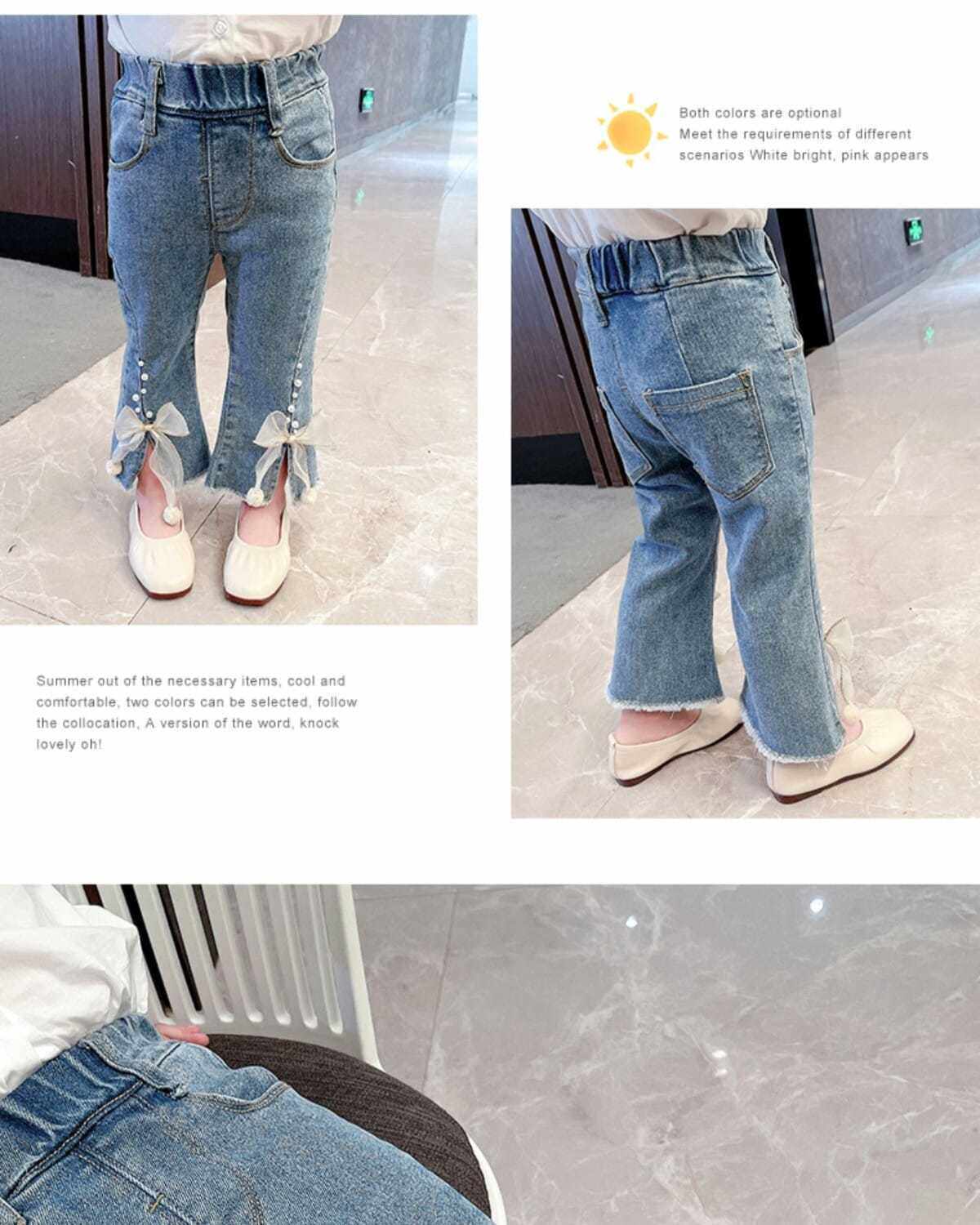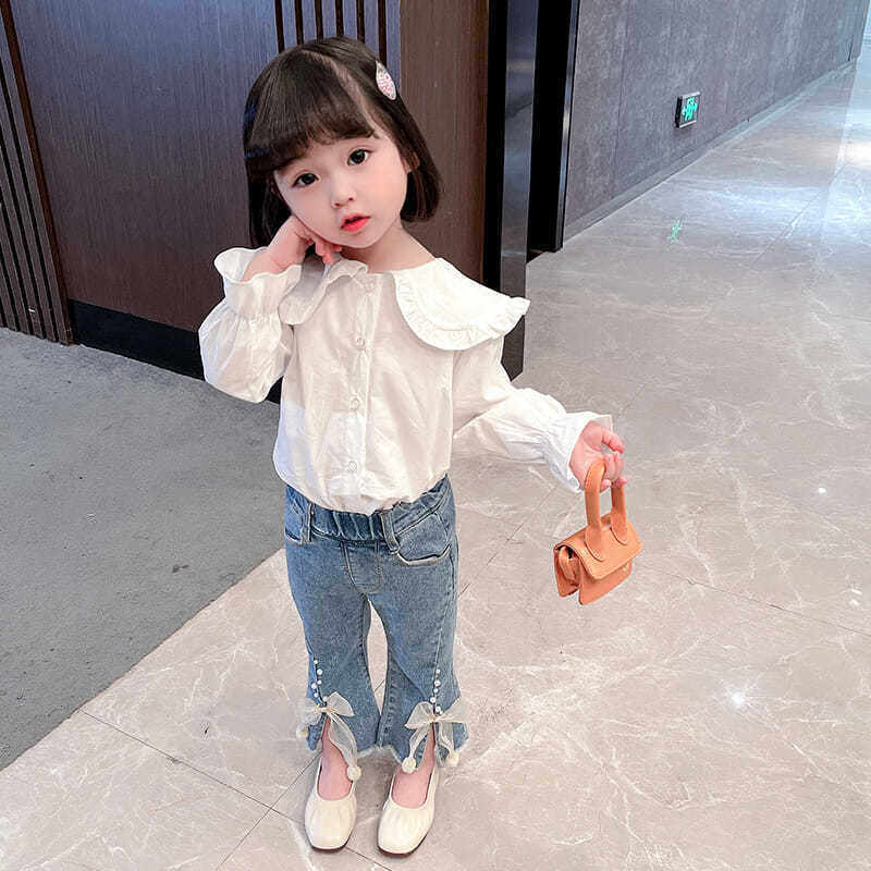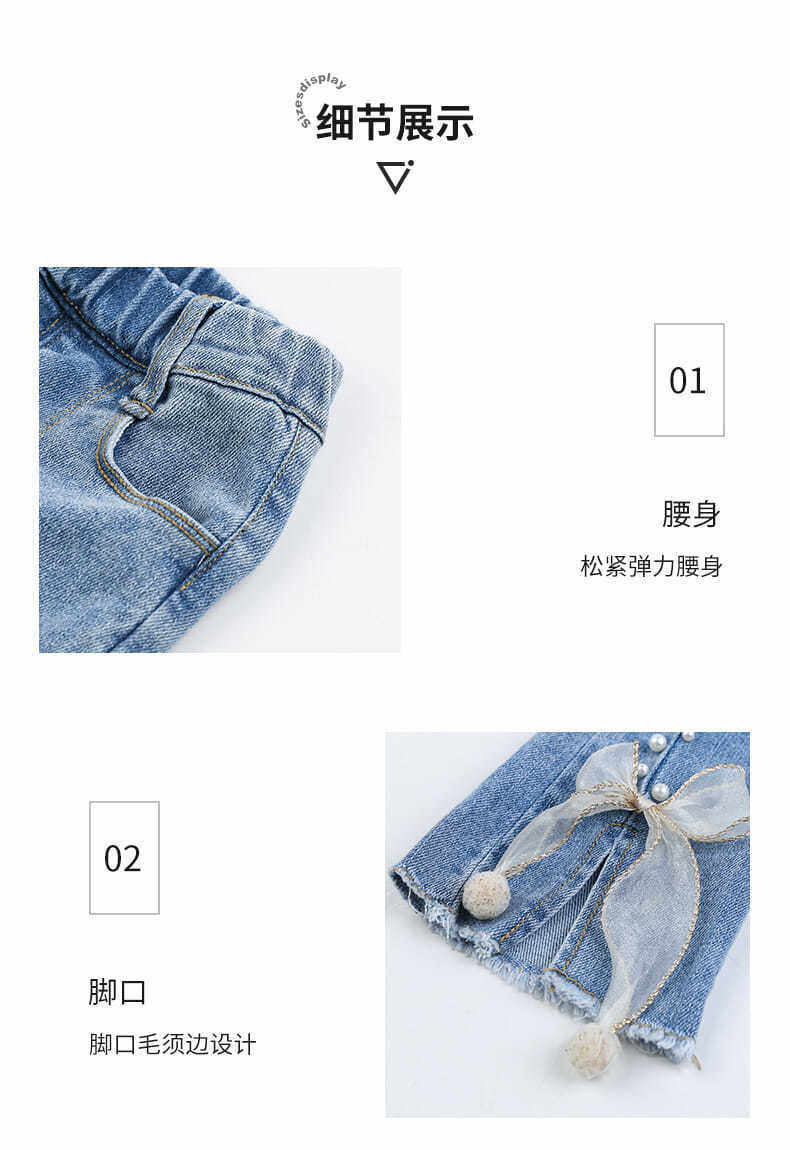 Джинсы, осенние детские штаны для девочек с бантиком, в западном стиле, в корейском стиле