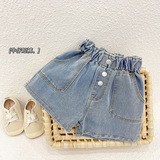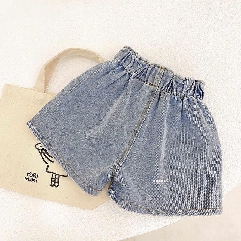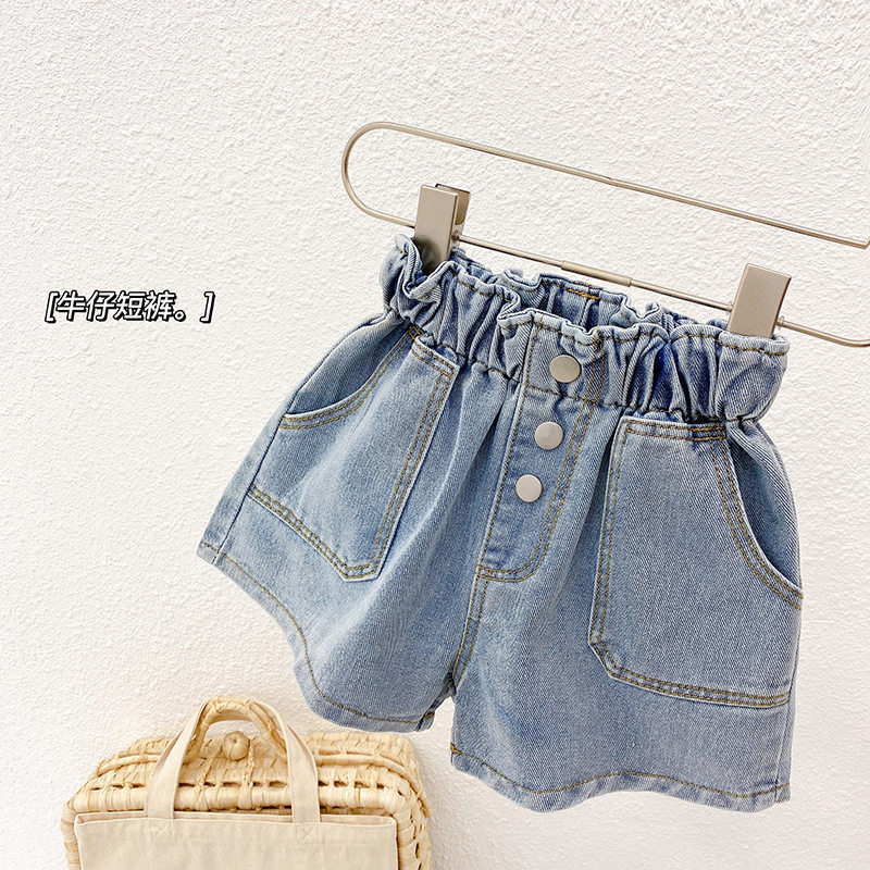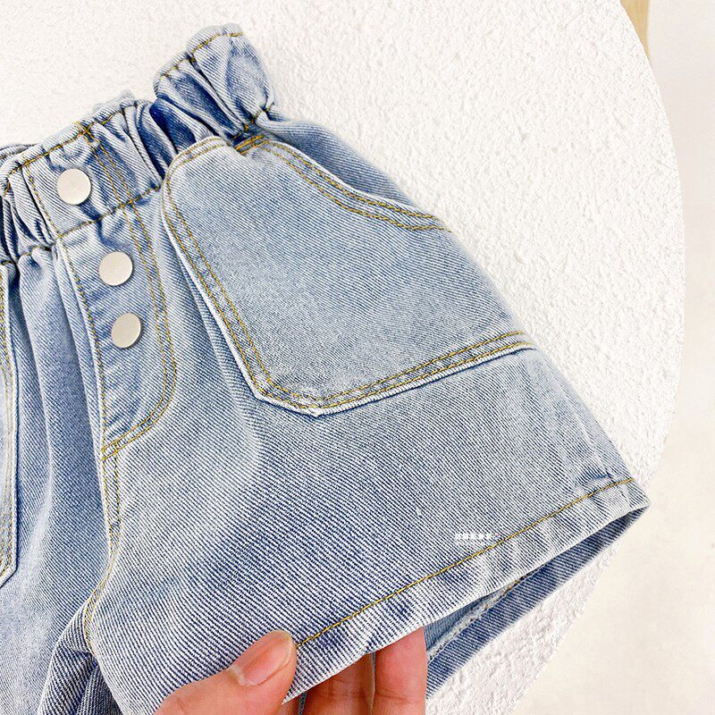 Тонкие летние штаны, детские джинсы, шорты, в западном стиле, высокая талия