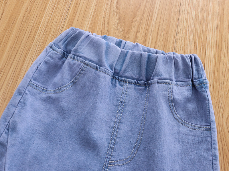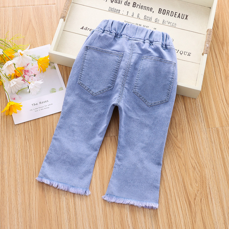 Джинсы, летняя одежда, летние штаны для девочек, эластичные штаны-клёш, в западном стиле