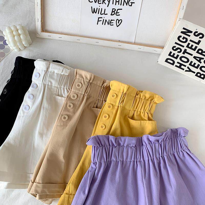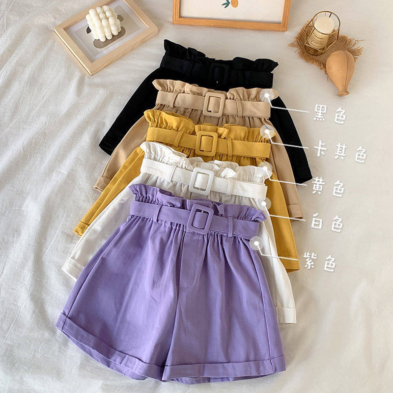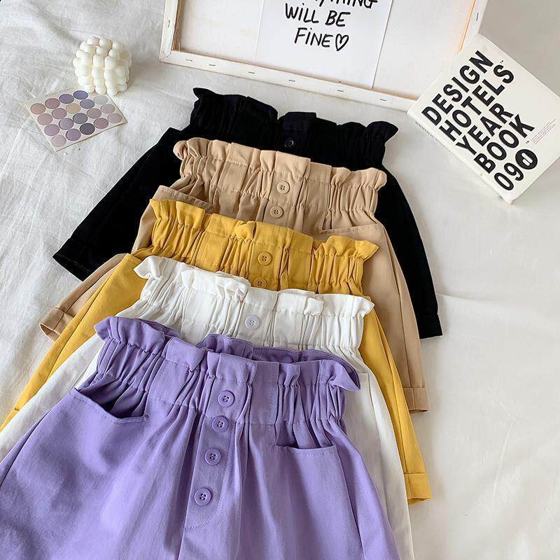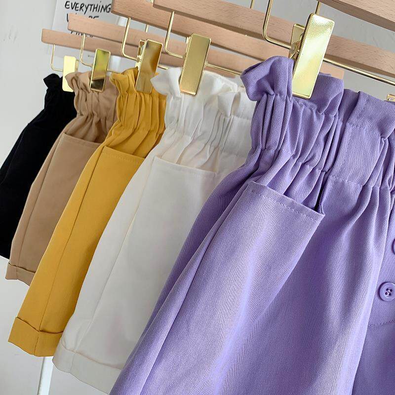 Летние однотонные шорты, штаны, летняя одежда, летняя тонкая форма, высокая талия