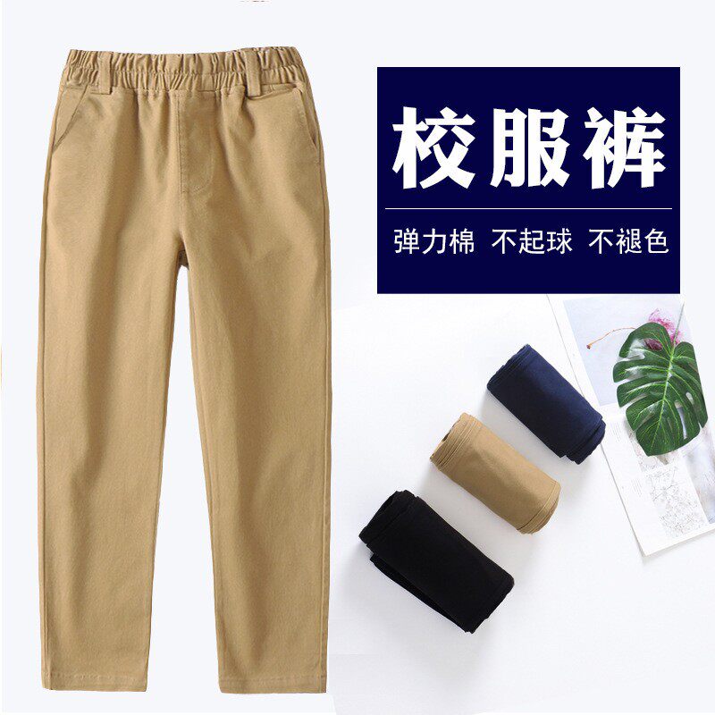 Детские хлопковые штаны для школьников, хлопковая осенняя темно-синяя форма для отдыха для мальчиков