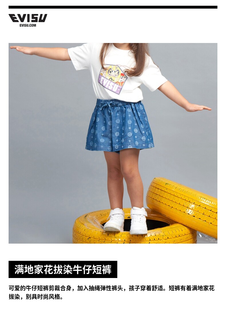 EVISU модные и крутые детские джинсовые шорты и юбки для девочек, окрашенные в крашенный деним, украшенные местными цветами.