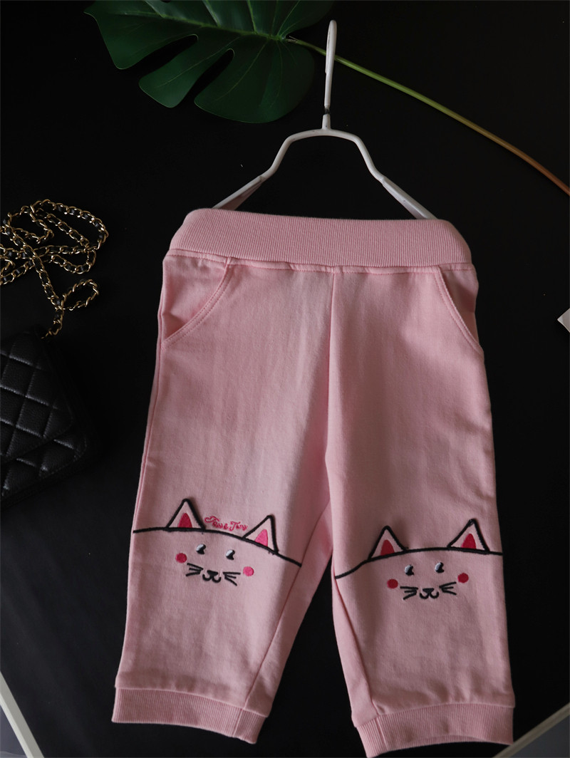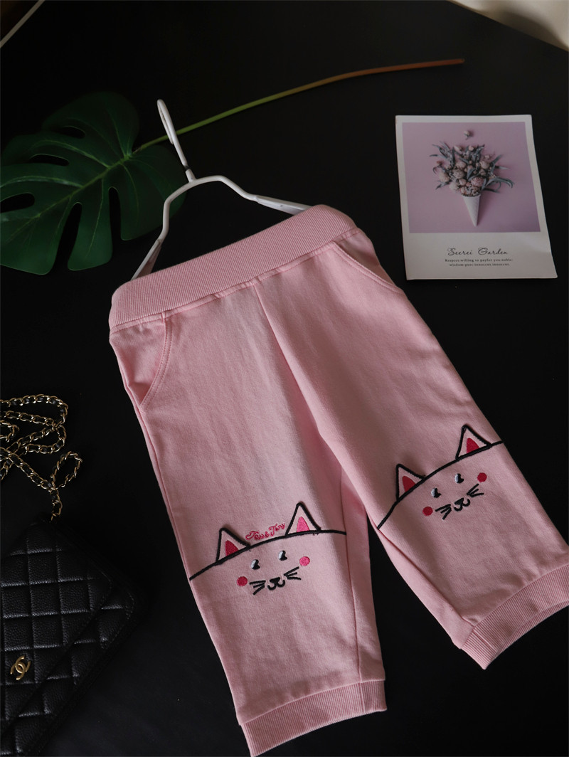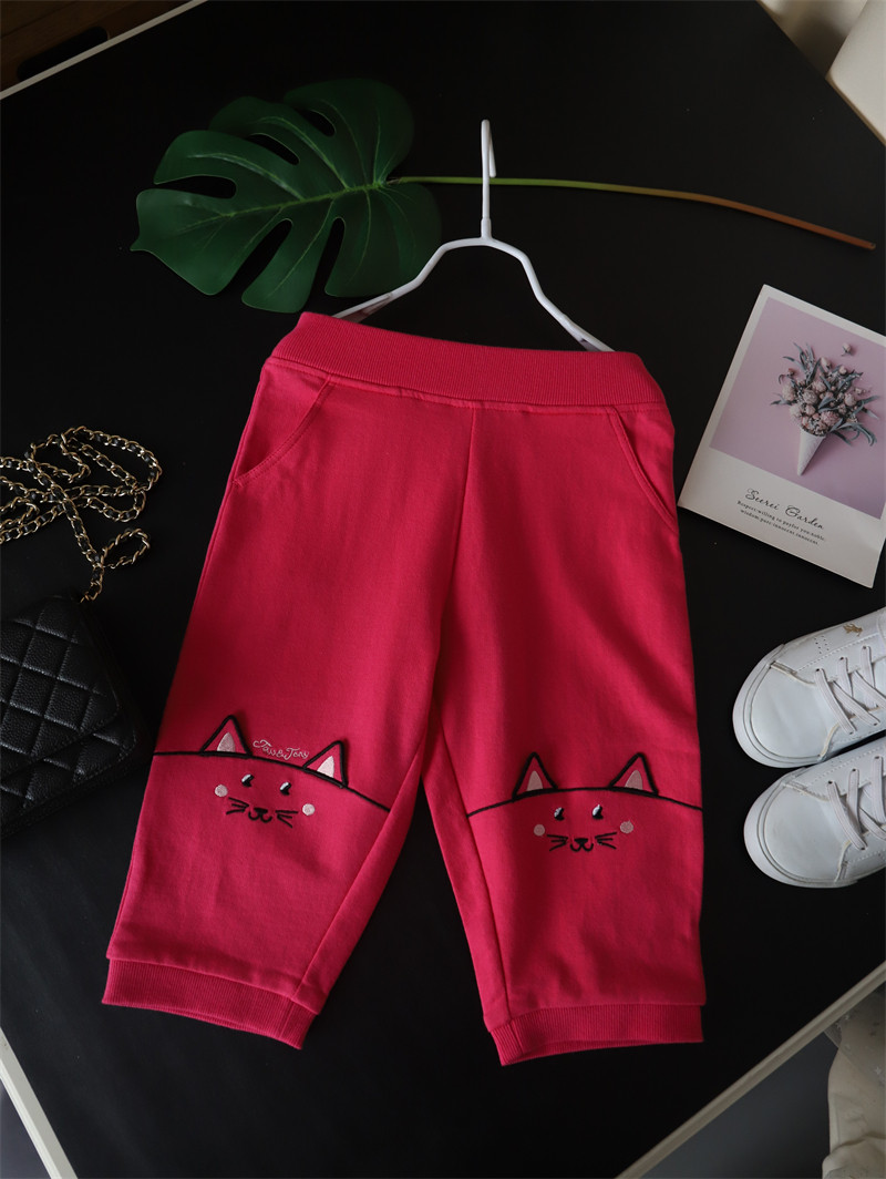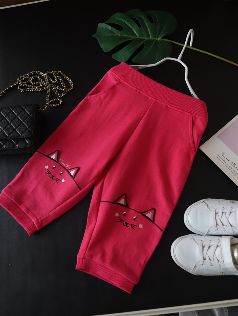 50% скидка специального предложения для летней одежды для девочек, милых хлопковых кошачьих ушей, брюк с 7 очками, повседневные брюки среднего размера, маленькие и средних лет детей