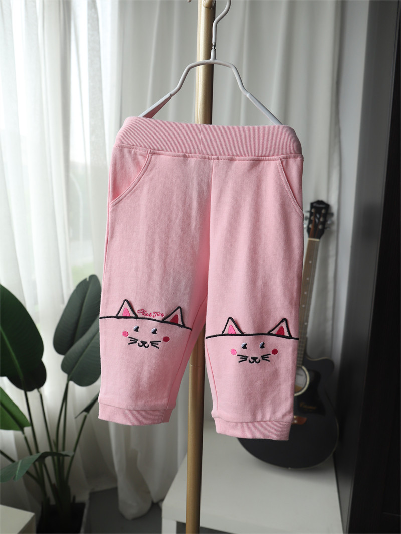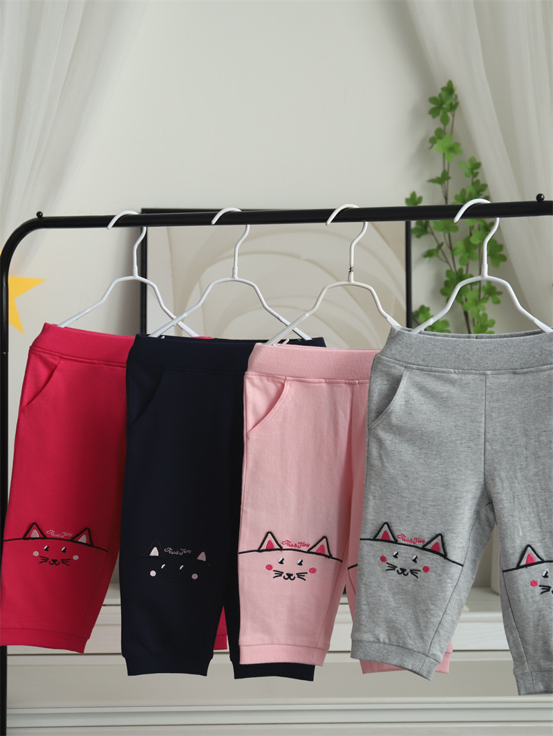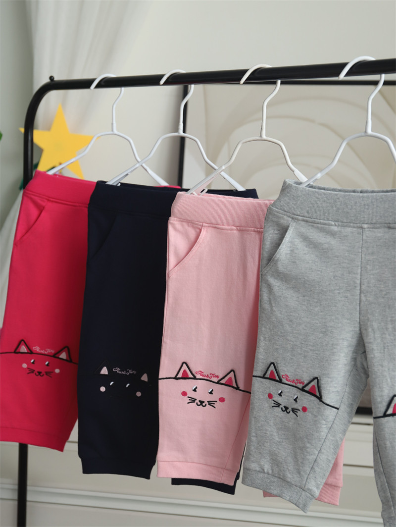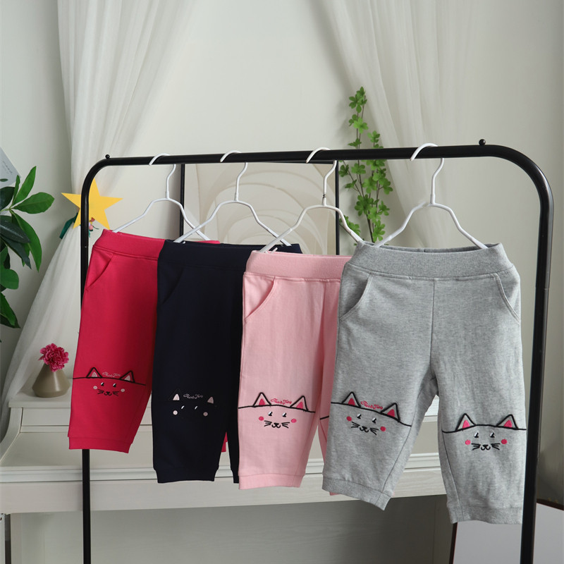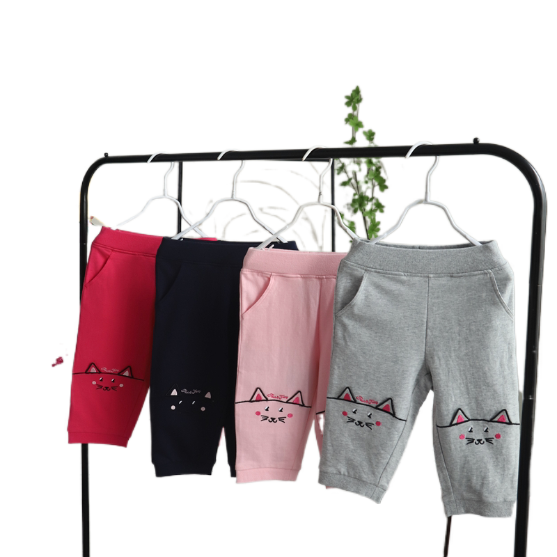 50% скидка специального предложения для летней одежды для девочек, милых хлопковых кошачьих ушей, брюк с 7 очками, повседневные брюки среднего размера, маленькие и средних лет детей