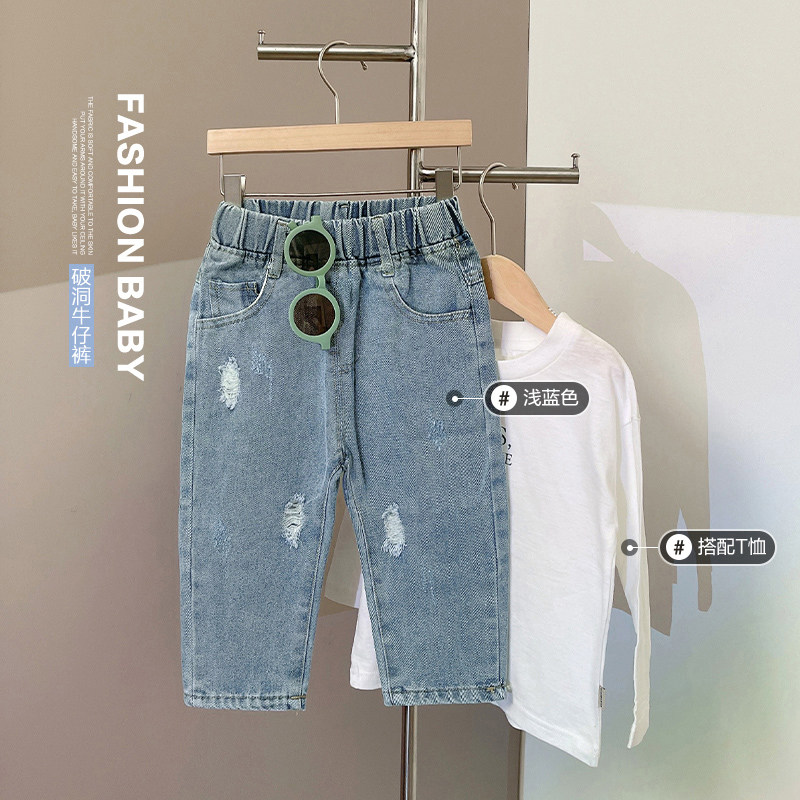 Весенние осенние детские джинсы для мальчиков, штаны, детская одежда, в западном стиле, в корейском стиле