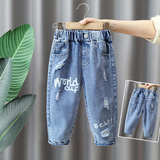 Детские весенние джинсы, осенние модные штаны для мальчиков, в корейском стиле, в западном стиле