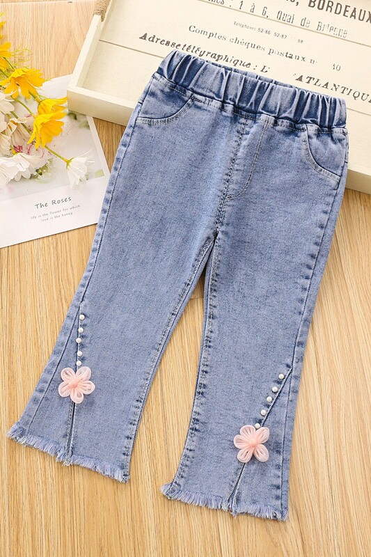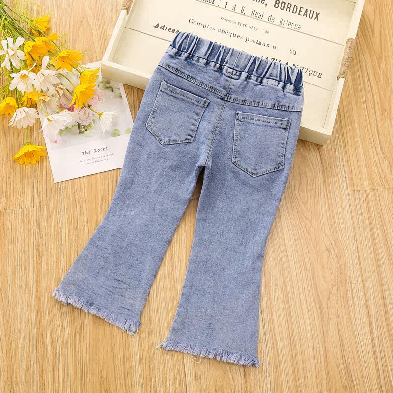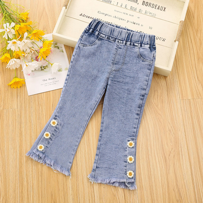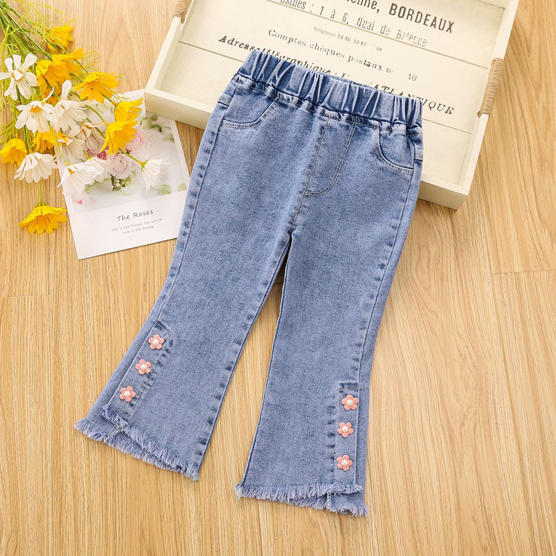 Штаны, штаны-клёш для девочек, эластичные джинсы, в западном стиле