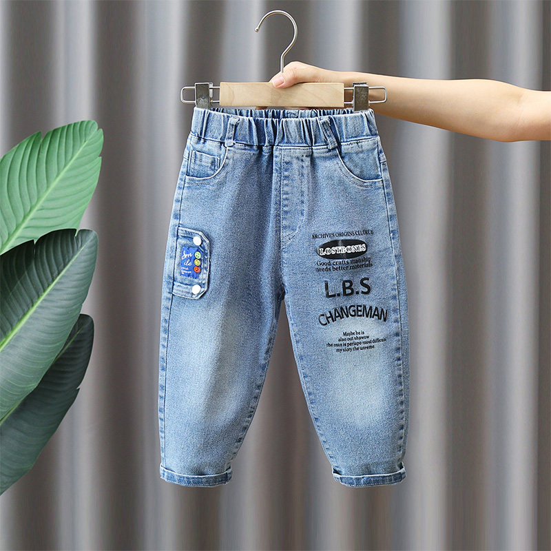 Джинсы для мальчиков, детские штаны, коллекция 2023, осенние, в западном стиле