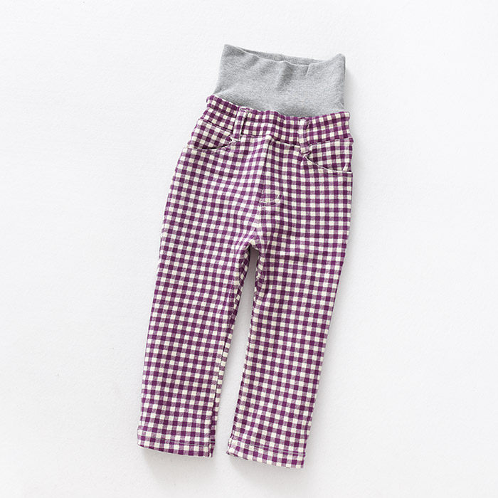 - Фиолетовые брюки с завышенной талией в клетку