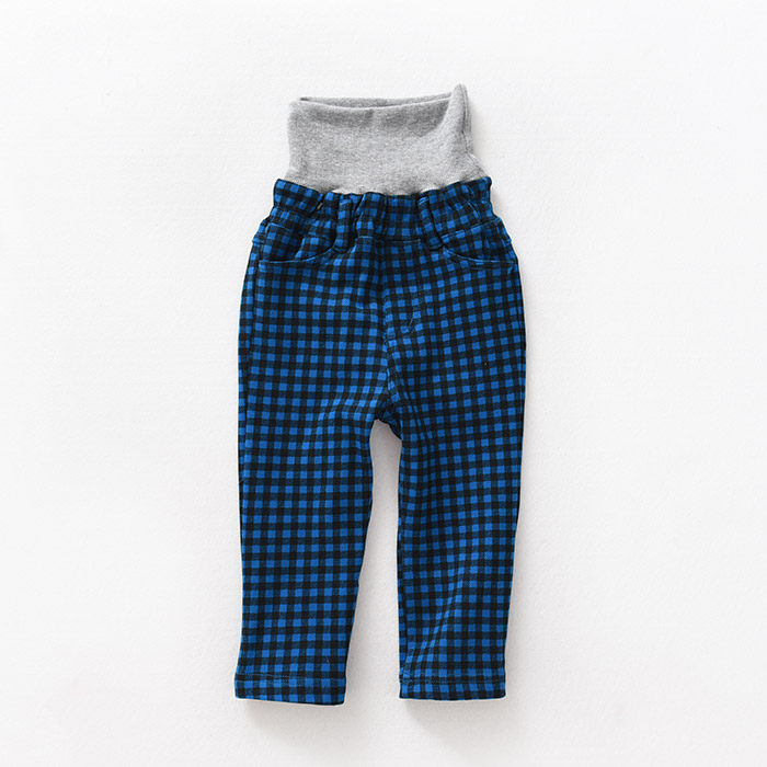 - Синие брюки в клетку с высокой талией