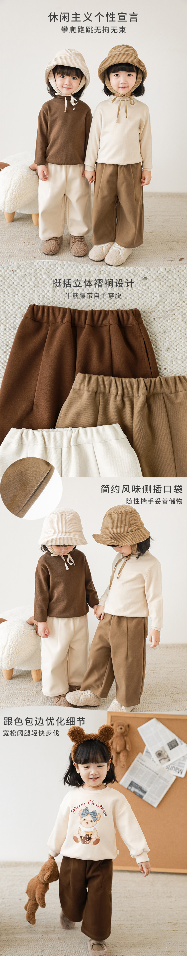 Зимние штаны, детские шерстяные цветные повседневные брюки, в западном стиле, оверсайз