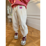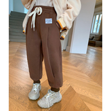 Кремовые утепленные штаны, детские повседневные брюки, (в наличии на складе), на шнурках, в западном стиле