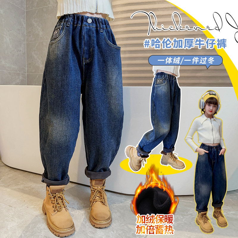Демисезонные штаны, детские джинсы для отдыха, в корейском стиле, подходит для подростков, увеличенная толщина
