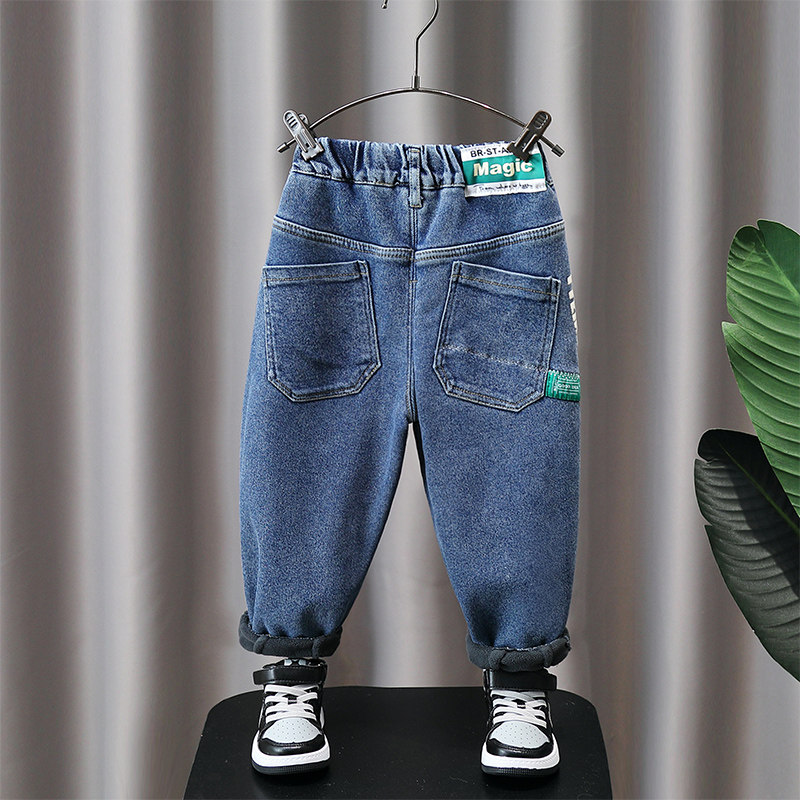 Флисовые демисезонные джинсы с начесом для мальчиков, бархатные детские зимние удерживающие тепло штаны, увеличенная толщина