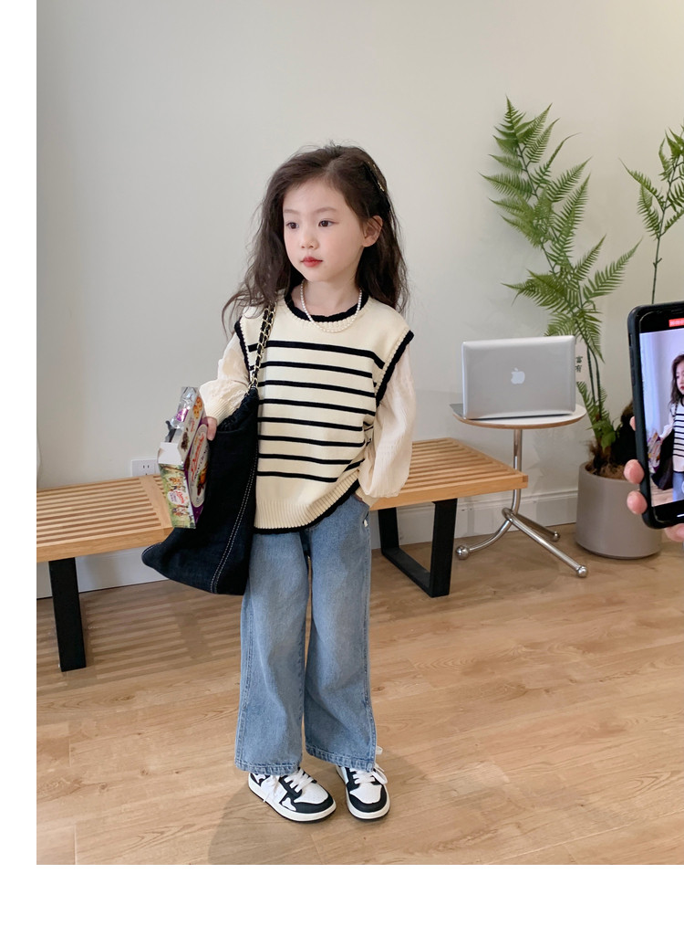 Кремовые весенние детские штаны, джинсы, детская одежда, коллекция 2023, свободный прямой крой