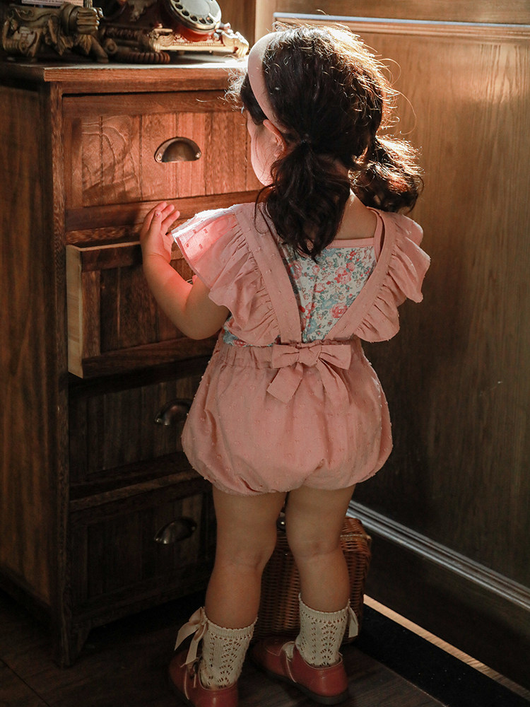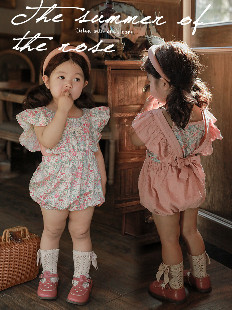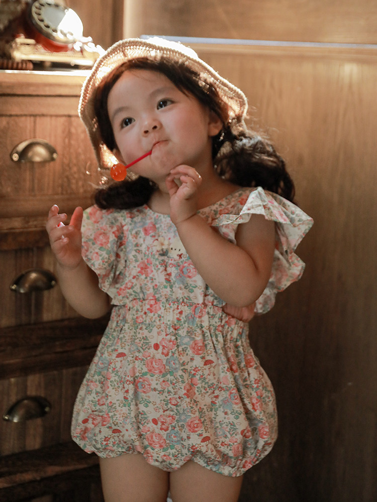Милый летний легкий и тонкий мятный комбинезон для девочек, цветочный принт