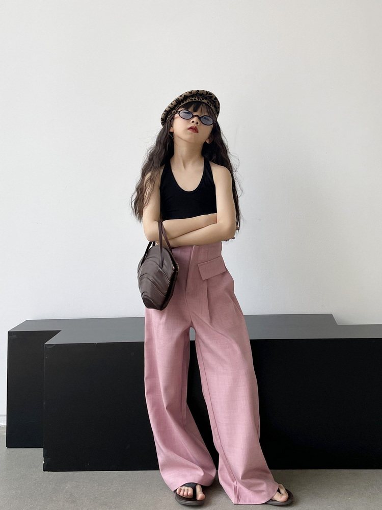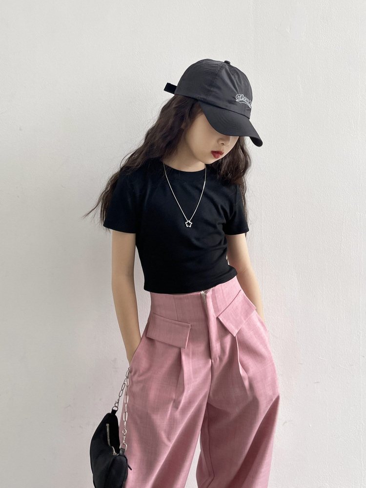 Детские розовые черные штаны, тонкая форма, детская одежда, подходят для подростков