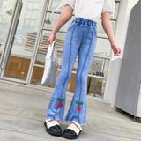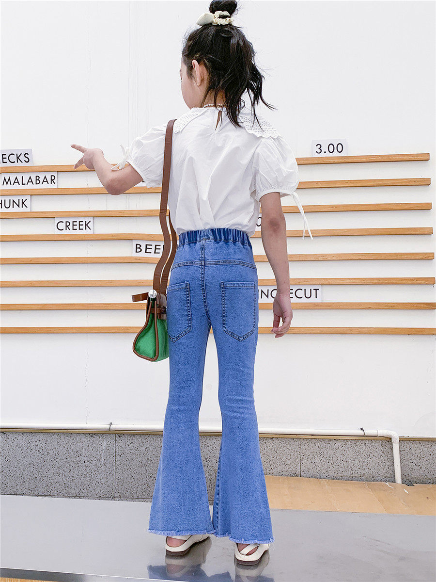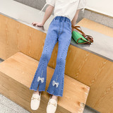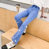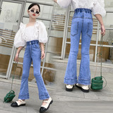 Джинсы, штаны, детские осенние модные штаны-клёш для девочек, в западном стиле
