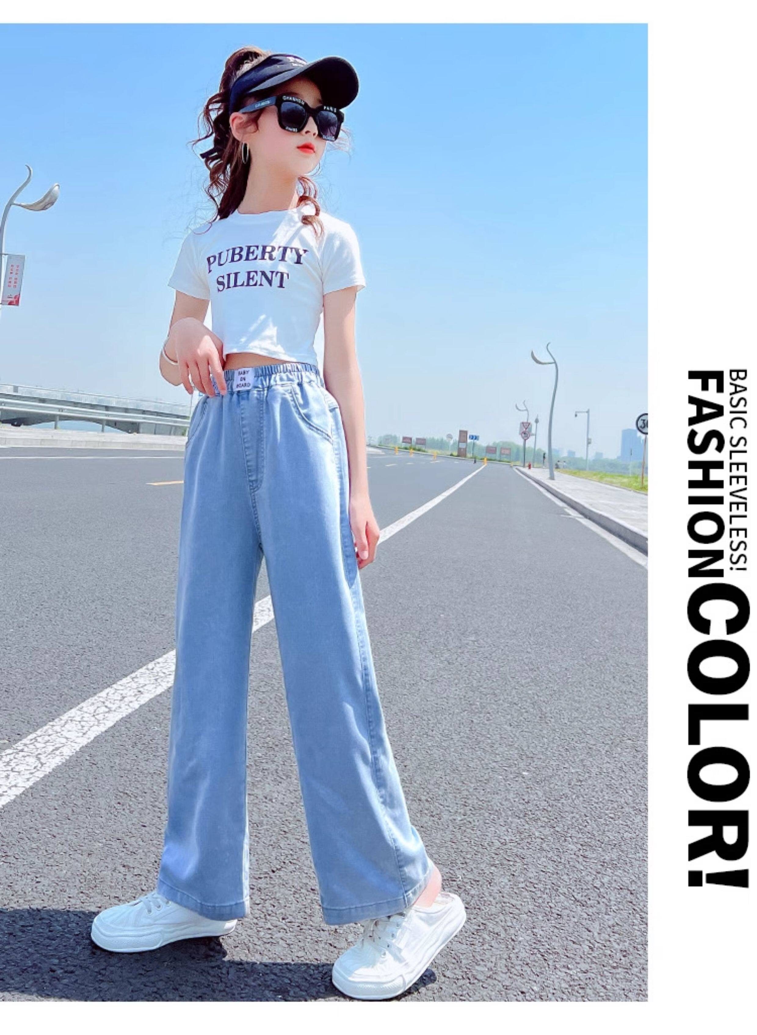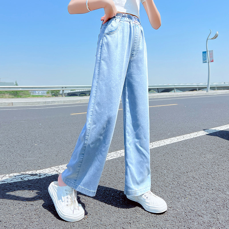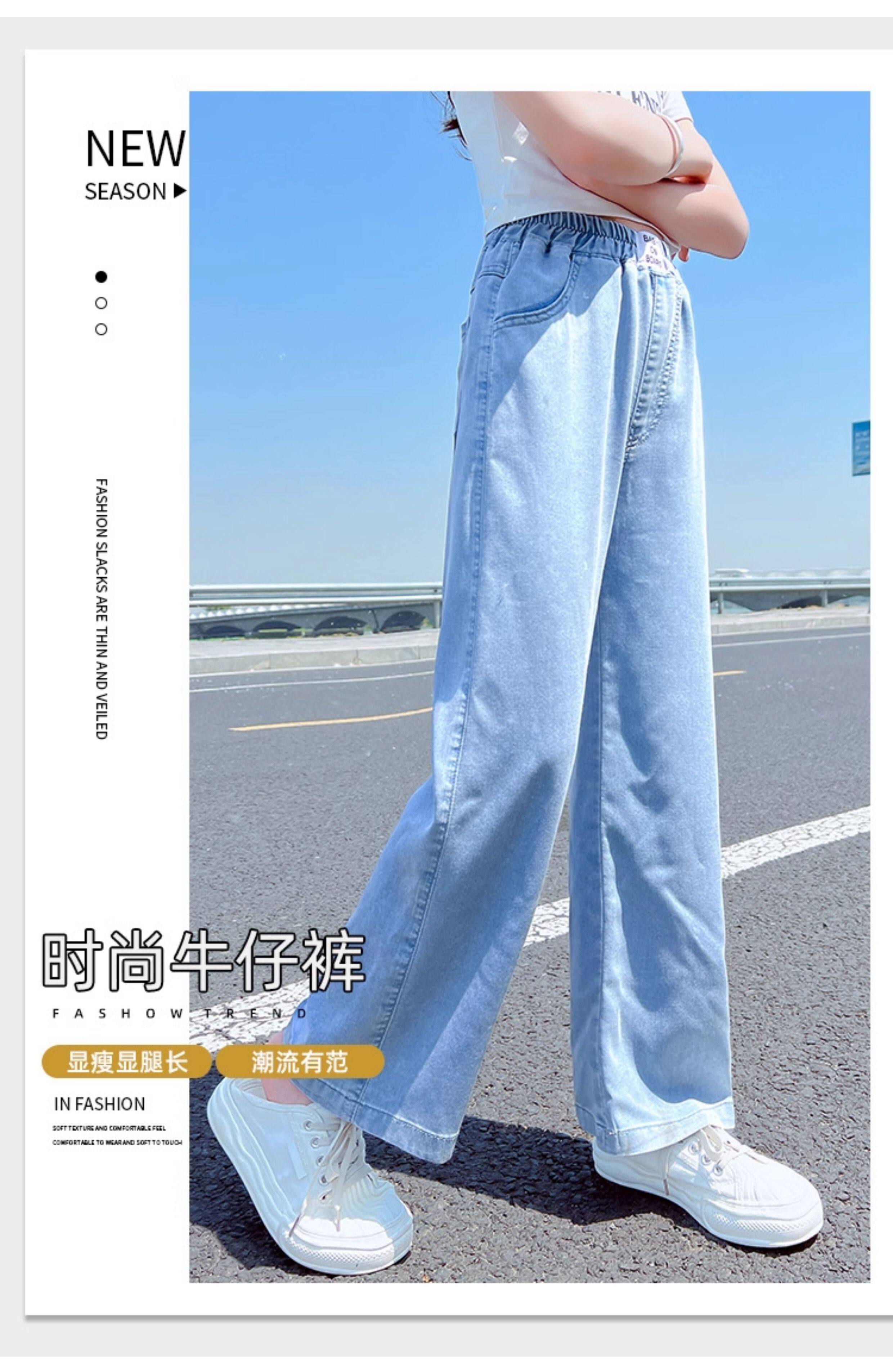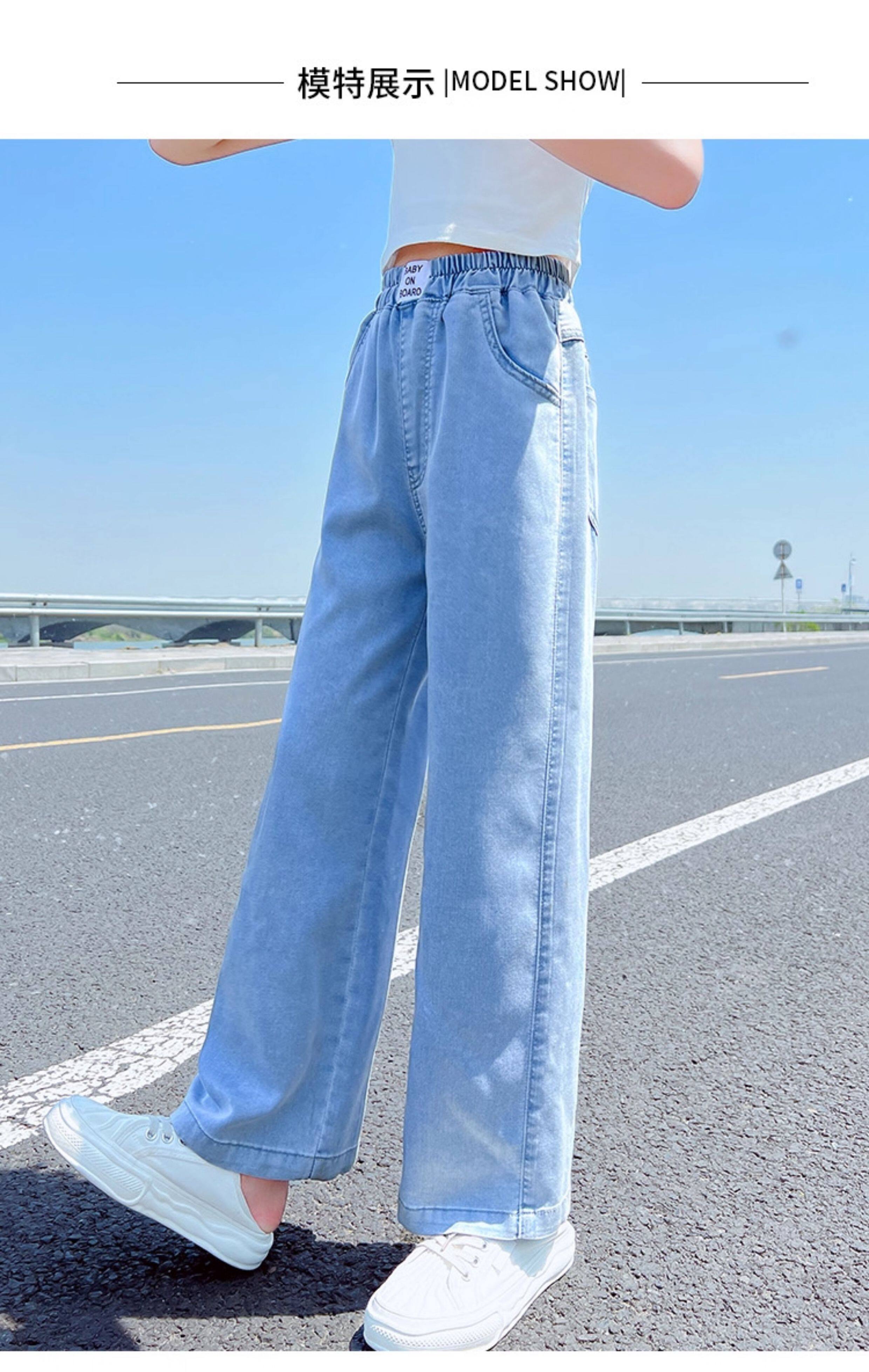 Джинсы, тонкие штаны, детская летняя одежда, форма, в западном стиле, подходят для подростков, свободный прямой крой