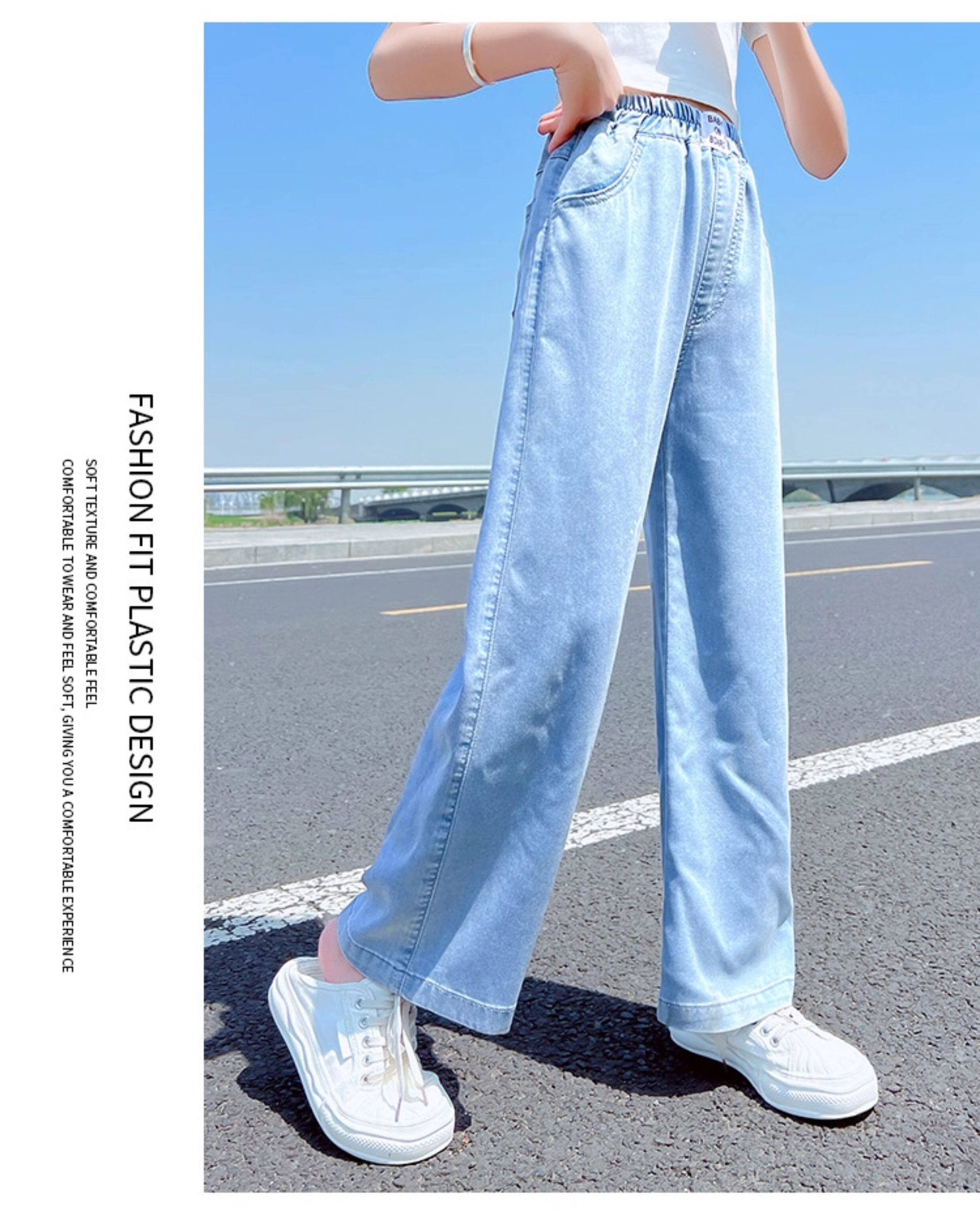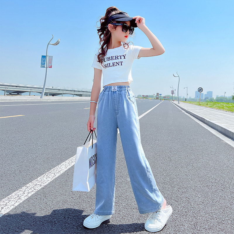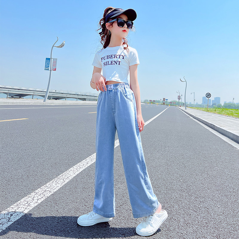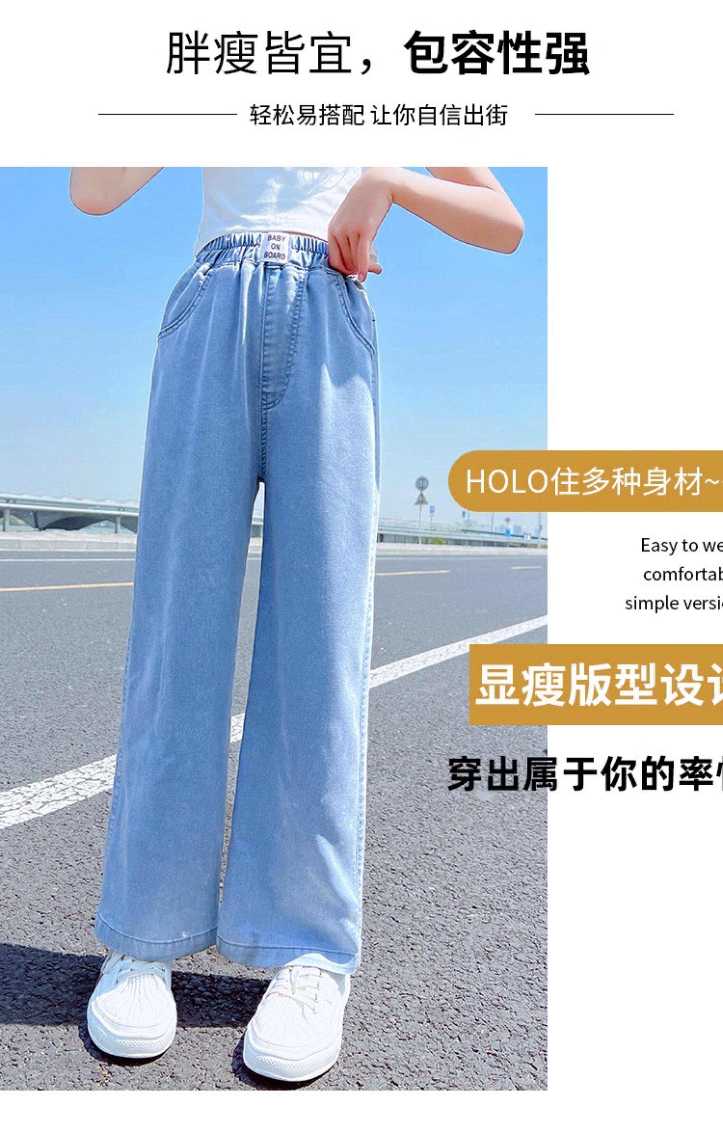 Джинсы, тонкие штаны, детская летняя одежда, форма, в западном стиле, подходят для подростков, свободный прямой крой