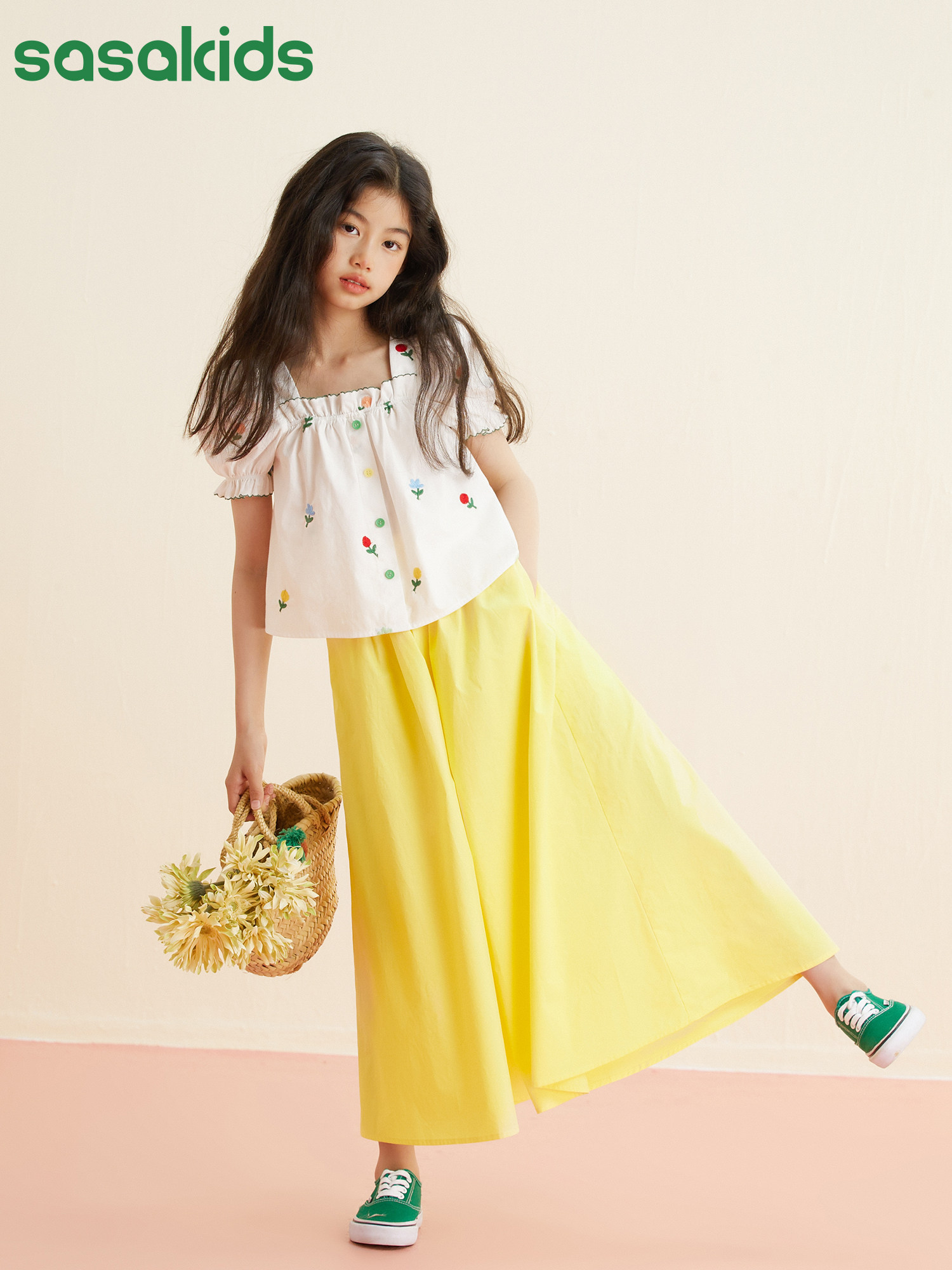 Sasakids Summer Light High Plearted Bright Color Energetic Wide Log Chaud Pants Casual Pants (цвет очень особенный)