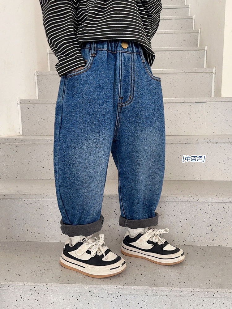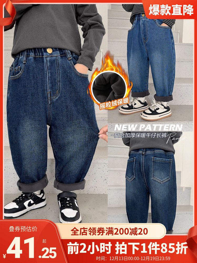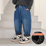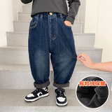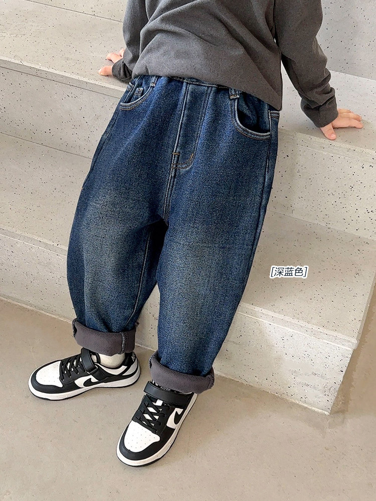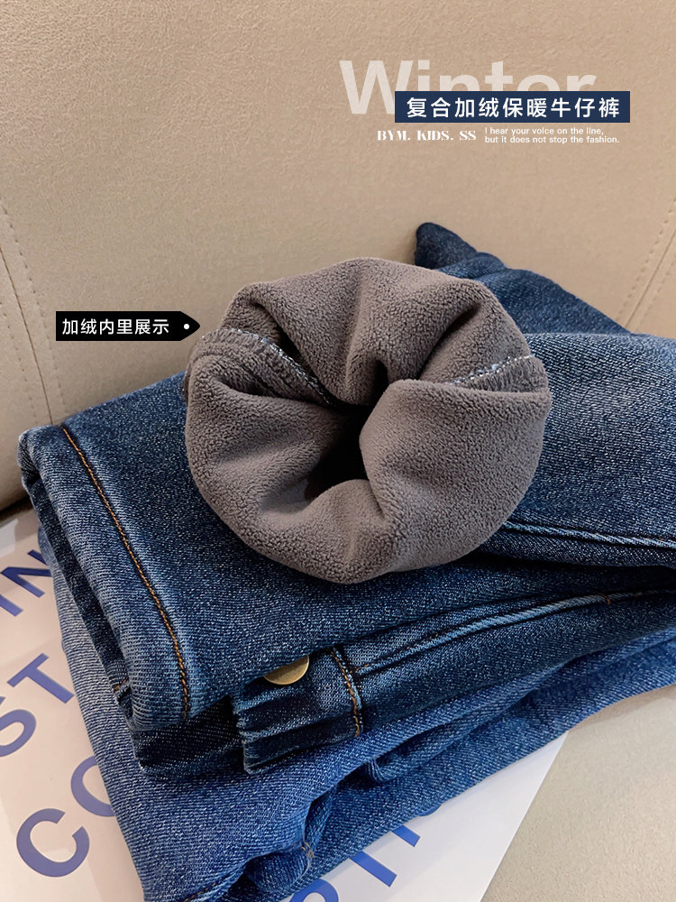 Флисовые джинсы с начесом для мальчиков, осенний демисезонный детский пуховик, детские удерживающие тепло штаны, детская одежда