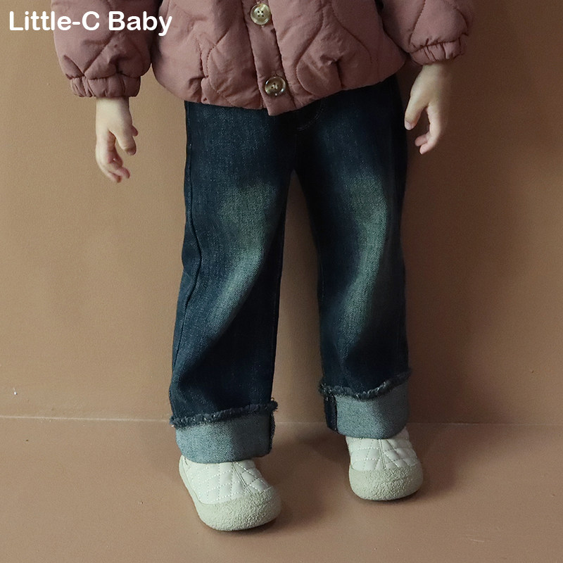 Ретро бархатные флисовые джинсы с начесом для девочек, демисезонные штаны, увеличенная толщина, свободный крой