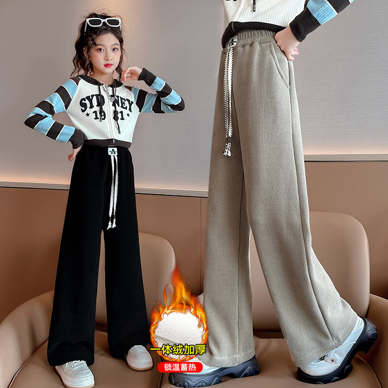 Демисезонные бархатные детские штаны для отдыха, увеличенная толщина, свободный прямой крой, подходит для подростков
