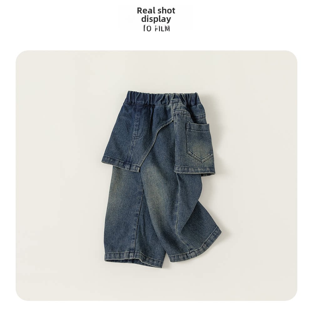Купить товар Брюки для девочек, джинсы для маленьких девочек, новые детские осенние наряды 2025 года, широкие брюки для девочек, осенние брюки, модные