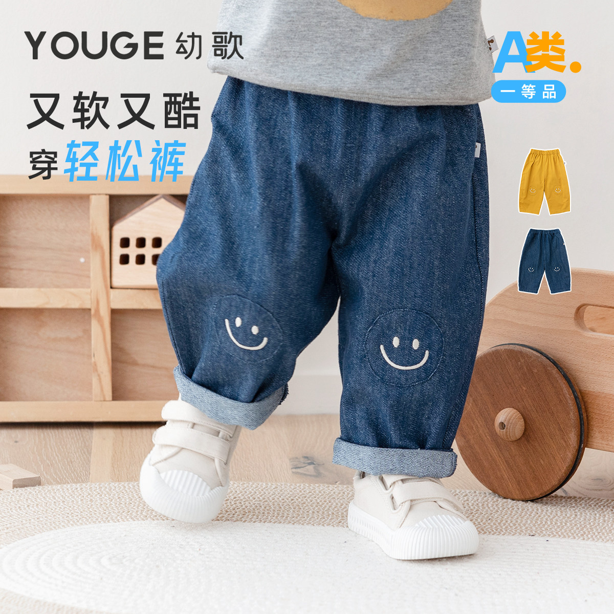 Джинсовые детские весенние джинсы, мягкие штаны, свободный прямой крой